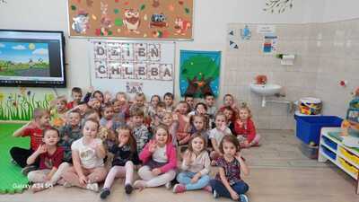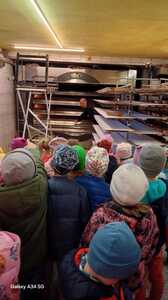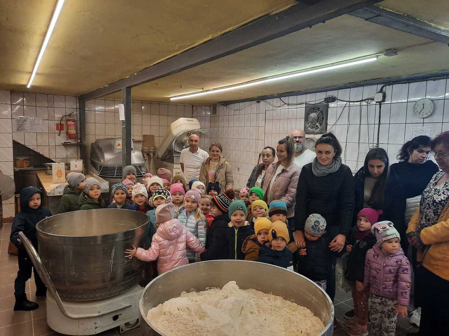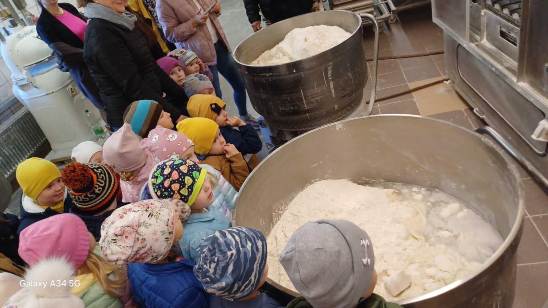 16 października obchodzimy Światowy Dzień Chleba z tej okazji nasze przedszkolaki odwiedziły piekarnię, gdzie dzięki uprzejmości właścicieli i pracowników maluchy poznały pracę piekarza i jego obowiązki. Zapach świeżego chleba, tajemnicze maszyny i uśmiechnięci piekarze – to wszystko czekało na dzieci podczas tej niezwykłej wyprawy. Z wielką ciekawością dzieci wkroczyły do miejsca, gdzie powstają pyszne chleby, bułki i słodkie wypieki. Pierwszym przystankiem była mąka – biała, delikatna substancja, z której powstaje ciasto. Dzieci mogły ją dotknąć, poczuć jej konsystencję i dowiedzieć się, skąd się bierze. Następnie przyszła pora na ogromną misę, w której mieszano ciasto. Było to jak podróż do wnętrza wulkanu! Przedszkolaki z zaciekawieniem obserwowały, jak z prostych składników powstaje coś tak wyjątkowego. Największą atrakcją był oczywiście piec. Ogromny, gorący, z tajemniczym wnętrzem. Dzieci słuchały o różnych rodzajach pieczywa, o tym, jak długo się je piecze i w jakiej temperaturze. Maluchy mogły nawet powąchać zapach świeżo upieczonego chleba, który unosił się w powietrzu. Wizyta w piekarni to nie tylko smakowa przygoda, ale także lekcja o pracy, o tym, że każdy produkt ma swoją historię i że za każdą chrupiącą kromeczką stoi ludzka praca i pasja. Dzięki takiej wizycie dzieci nie tylko poznały proces powstawania chleba, ale także rozwinęły swoją wyobraźnię i zmysły.