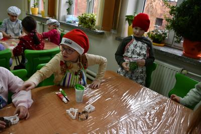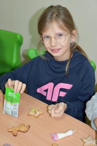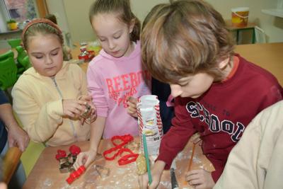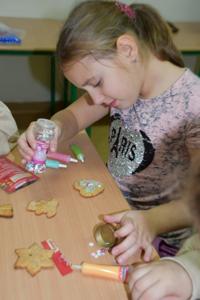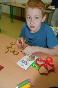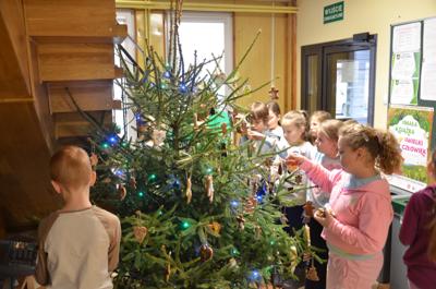 Święta Bożego Narodzenia zbliżają się wielkimi krokami, a więc najwyższy czas na pieczenie miodowych, pachnących, świątecznych pierniczków. Podjęli się tego zadania uczniowie klasy III i w poniedziałek upiekli, a następnie pięknie udekorowali masę pierniczków. W dniu dzisiejszym wraz z wychowawczynią zawieźli je do Urzędu Gminy w Szastarce, a tam czekała już na nie piękna choinka. Trzecioklasiści  z wielką radością i entuzjazmem przystąpili do ubierania drzewka. W ciągu kilku minut wszystkie pierniczki zawisły na gałązkach i choinka była nie tylko jeszcze piękniejsza, ale i pachnąca. Podczas pobytu w urzędzie towarzyszyły dzieciom Wójt Gminy pani Elżbieta Kowalczyk oraz Dyrektor GZOPO pani Monika Łukasik. Obie panie podziwiały zarówno dzieci jak i efekty ich pracy. Pani Wójt zaznaczyła, że zapoczątkowaliśmy nową bożonarodzeniową tradycję – ubieranie drzewka miodowymi pierniczkami. W podziękowaniu otrzymaliśmy słodycze i życząc wszystkim pracownikom Urzędu Gminy radosnych świąt wróciliśmy do szkoły. Mamy nadzieję, że choinka będzie cieszyć swym widokiem i pierniczkowym zapachem. Dziękujemy Pani Wójt za zaproszenie i za mile spędzony czas.
