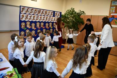 W naszym przedszkolu odbyła się niezwykła uroczystość – pasowanie na przedszkolaka. To był dzień pełen radości, wzruszeń i dziecięcych uśmiechów. Nasi najmłodsi wychowankowie, ubrani w odświętne stroje, zaprezentowali swoje umiejętności recytując wierszyki, śpiewając piosenki i tańcząc. Z wielką uwagą i wzruszeniem zaproszeni rodzice mogli podziwiać swoje pociechy. Tego dnia gościliśmy również Panią Wójt Elżbietę Kowalczyk, Panią dyrektor GZOPO Monikę Łukasik. Kulminacyjnym momentem było pasowanie każdego dziecka symbolicznym ołówkiem, którego dokonała dyrektor naszej szkoły Pani Marta Plichta. Na pamiątkę tego wyjątkowego dnia, każde dziecko otrzymało dyplom i upominek. Po uroczystości wszyscy udali się na słodki poczęstunek. Gratulujemy naszym najmłodszym i życzymy im wielu sukcesów w przedszkolu!
