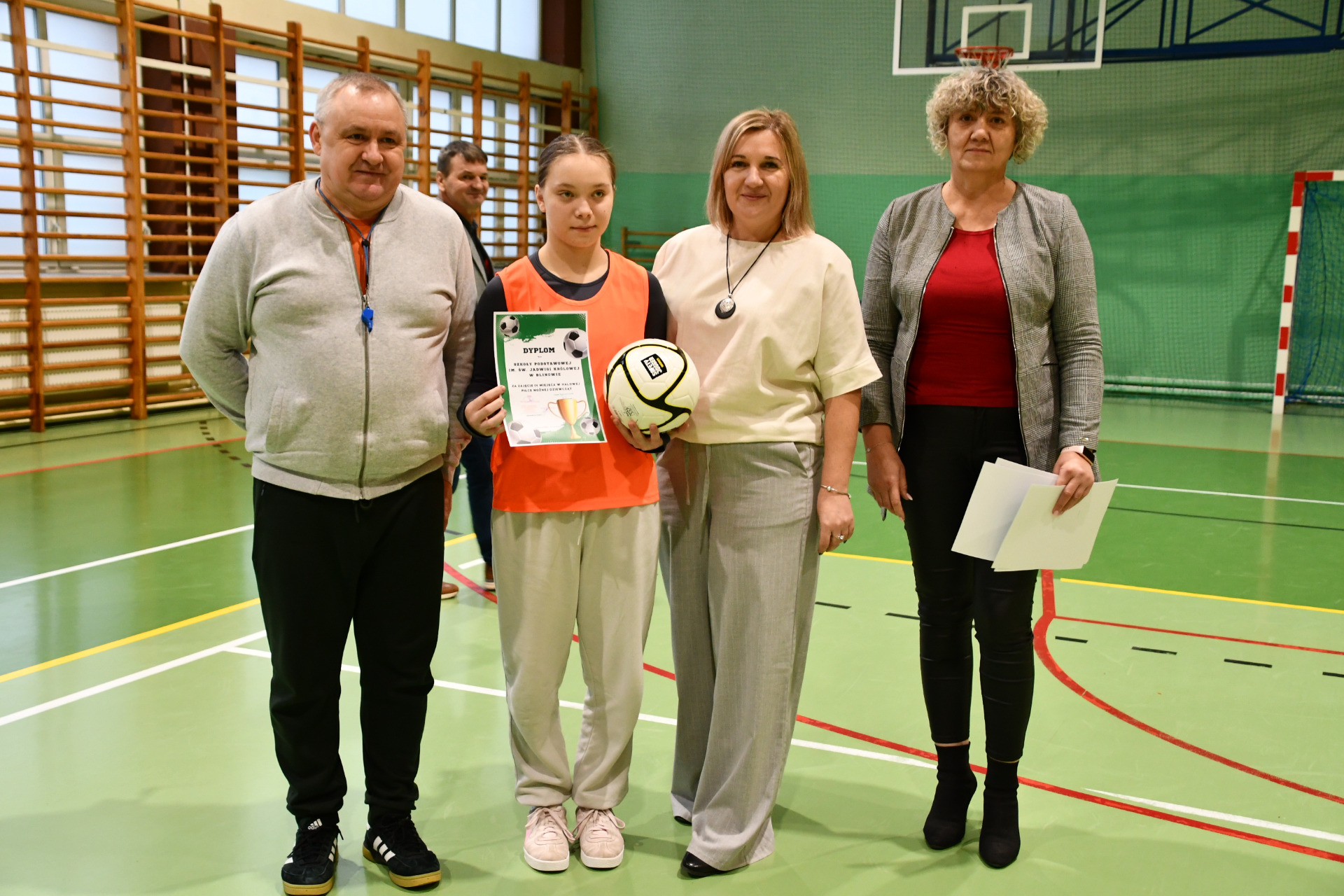 Po zakończeniu turnieju, nagrody zwycięzcom wręczyła Pani Wójt Elżbieta Kowalczyk. Wszystkie drużyny otrzymały pamiątkowe dyplomy, drobne upominki. Nie zabrakło też słodkiej niespodzianki.