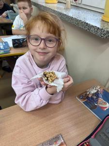 Okres przedszkolny i szkolny jest niezmiernie ważnym etapem kształtowania się postaw determinujących aktualne i przyszłe zachowania dotyczące zdrowia. Ważne jest edukowanie dzieci w zakresie prawidłowego żywienia. Realizując kolejne zadania #alertekologiczny klasa I przygotowała z przyniesionynych produktów musli. Było smacznie, słodko i zdrowo 🙂