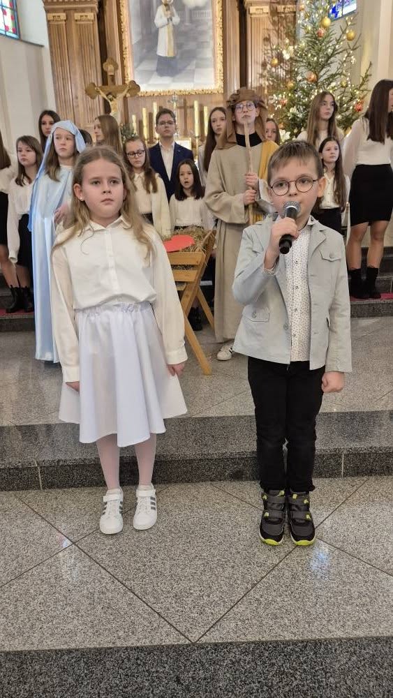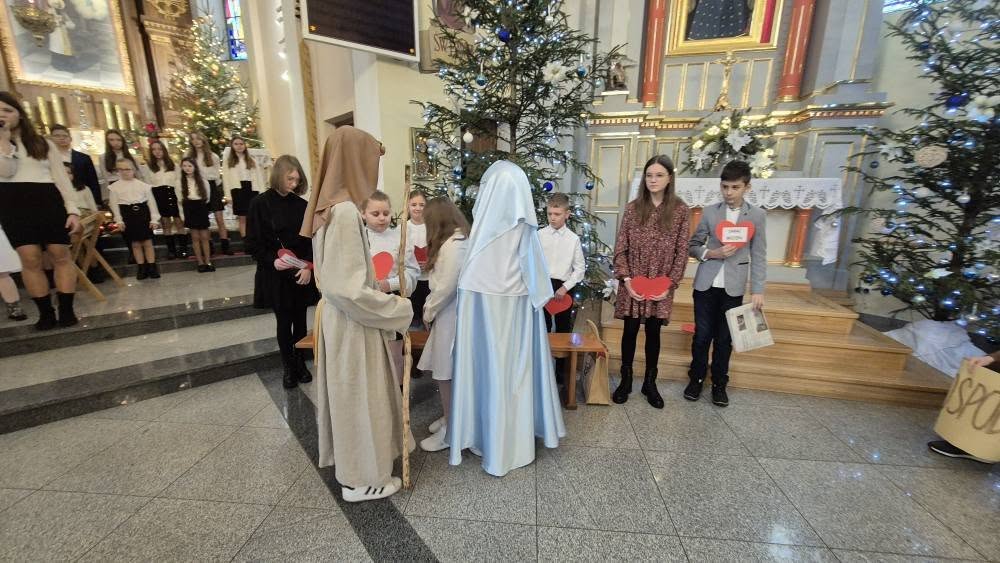 Młodzi aktorzy, wcielając się w role Maryi, Józefa, aniołów czy gospodarzy przenieśli nas w czasie do Betlejem. Dzięki ich zaangażowaniu i talentowi, mogliśmy na nowo przeżyć wzruszające chwile związane z narodzinami Jezusa Chrystusa. Piękne stroje oraz kolędy śpiewane przez szkolny chór dopełniły całości, tworząc niezapomnianą atmosferę świąt.
