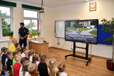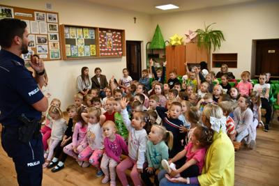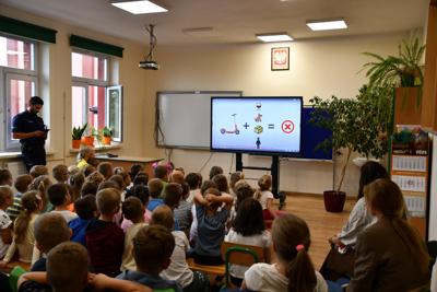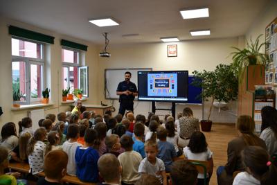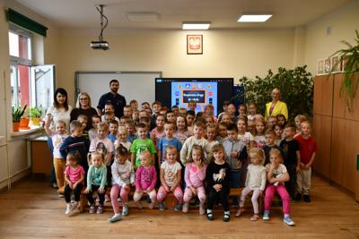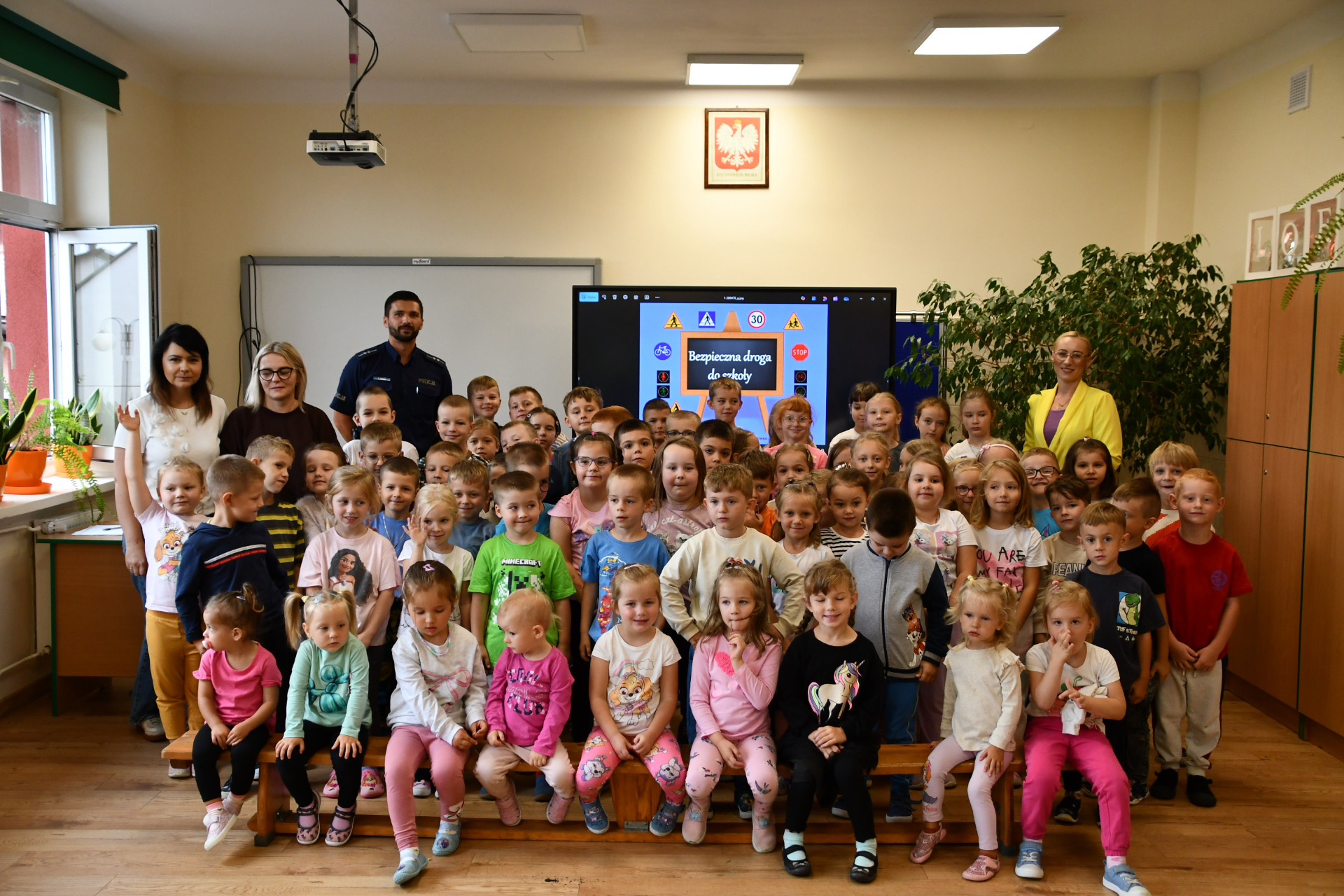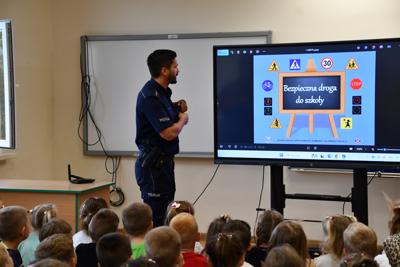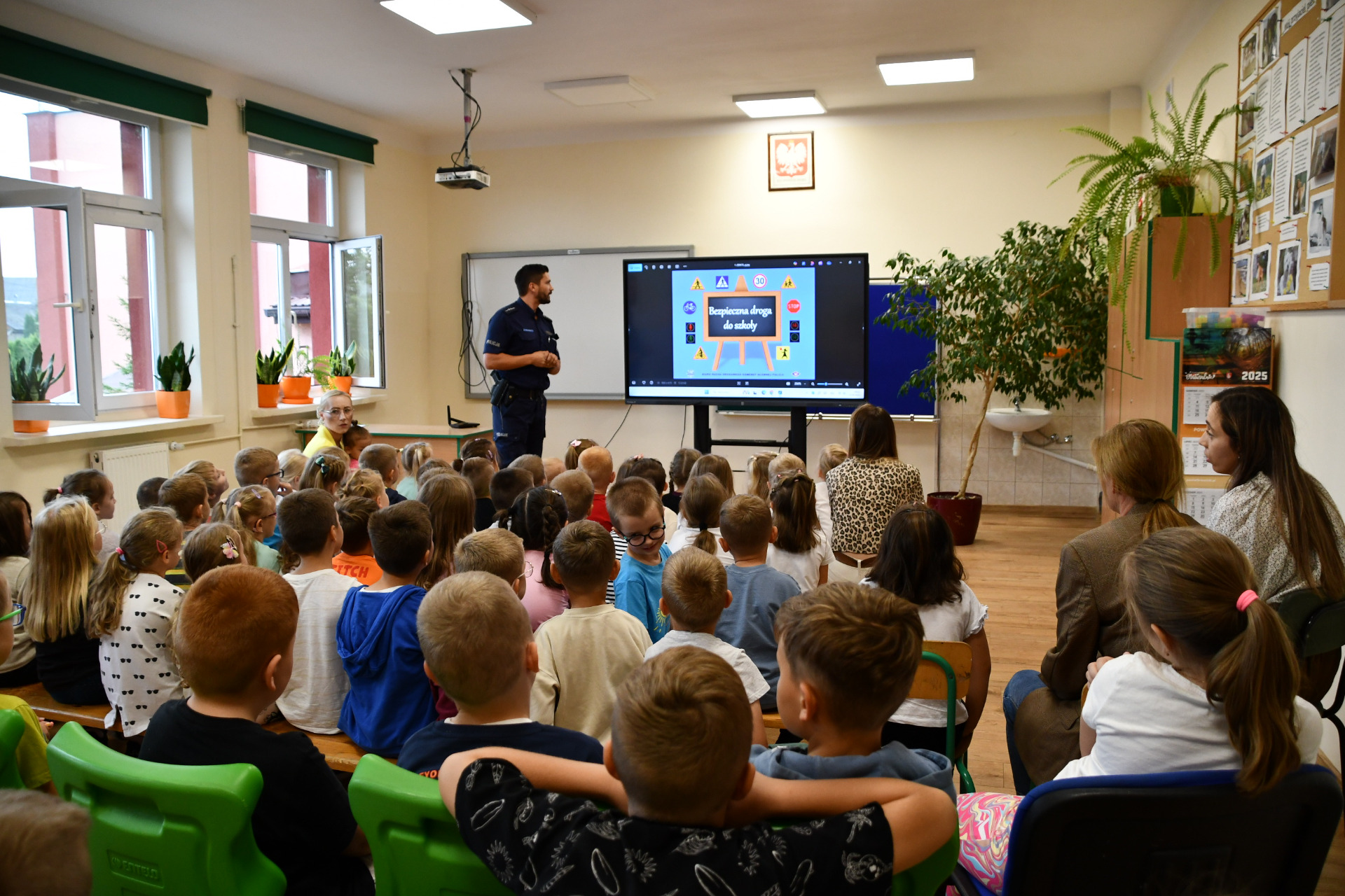 Naszą szkołę odwiedził funkcjonariusz Policji, który przeprowadził pogadankę dotyczącą zasad bezpieczeństwa w drodze do szkoły. Podczas spotkania uczniowie przypomnieli sobie, jak prawidłowo przechodzić przez jezdnię, w jaki sposób korzystać z przejść dla pieszych i sygnalizacji świetlnej oraz dlaczego tak ważne jest noszenie elementów odblaskowych. Policjant mówił także o tym, jak należy zachowywać się w autobusie i na przystanku oraz jak unikać kontaktu z nieznajomymi osobami. Dzieci z zainteresowaniem słuchały wskazówek, chętnie zadawały pytania i dzieliły się swoimi doświadczeniami. Była to cenna lekcja, dzięki której uczniowie utrwalili wiedzę na temat bezpiecznej drogi do szkoły i uświadomili sobie, że troska o bezpieczeństwo zaczyna się od ich własnych decyzji i zachowań.