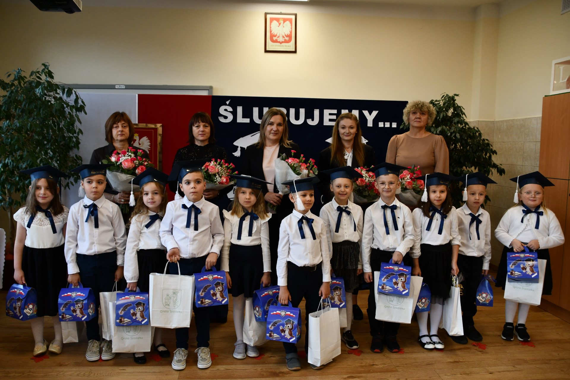 Dzieci zaprezentowały program artystyczny, recytowały wiersze,śpiewały piosenki. Doniosłym momentem uroczystości było ślubowanie na Sztandar Szkoły, uczniowie obiecali być dobrymi uczniami i Polakami, a swym zachowaniem i nauką sprawiać radość rodzicom i nauczycielom. Uroczystość uświetniła swoją obecnością pani wójt gminy Szastarka Elżbieta Kowalczyk i Pani dyrektor GZOPO Monika Łukasik. Nie obyło się bez pamiątkowych zdjęć, dyplomów oraz licznych upominków. Ceremonia ślubowania dostarczyła dzieciom niezapomnianych przeżyć, rodzicom wiele wzruszeń, a nauczycielom dumy i radości z nowo przyjętych uczniów.