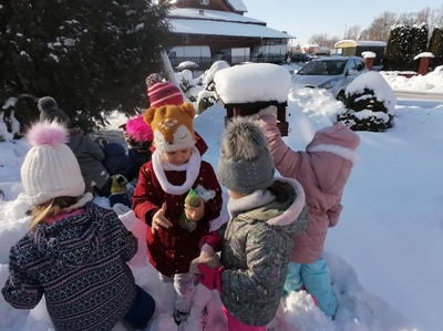 Tegoroczna zima płata nam figle, raz jest ciepło, a raz mroźno. Dlatego korzystając z jej uroku postanowiliśmy pobawić się na śniegu w naszym przedszkolnym ogrodzie. Dzieci oddały się zimowemu szaleństwu, zjeżdżając z górki, rzucając śnieżkami do siebie, a także "at