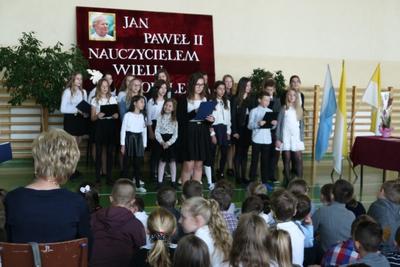 16 października obchodziliśmy XVII Dzień Papieski. W tym roku przebiegał on pod hasłem ,,Idźmy z nadzieją". Z tej okazji uczniowie z klas szkoły podstawowej i gimnazjum w uroczystej akademii śpiewem wyrazili pamięć i wdzięczność za pontyfikat św. Jana Pawła II-nauczyciela wielu pokoleń...