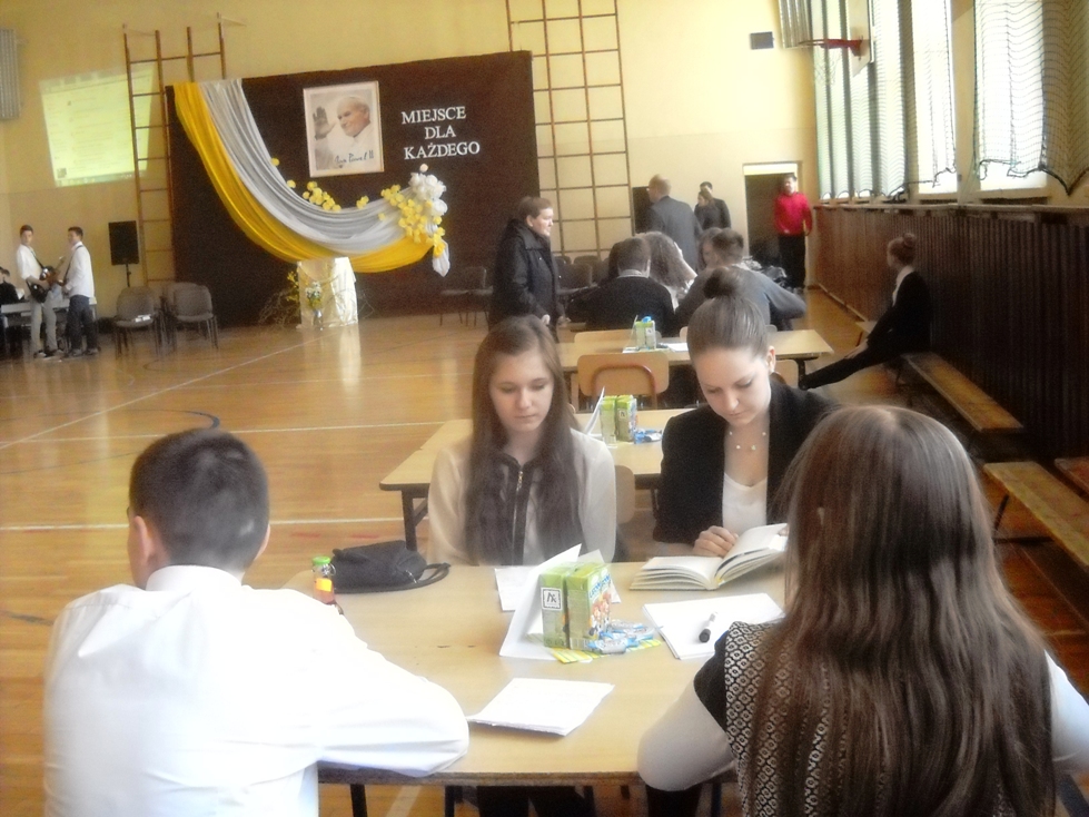 Po prezentacji grup odbył się turniej, kiedy to uczniowie odpowiadali na siedemnaście pytań o różnej skali trudności. Po podliczeniu wyników każdej drużyny, zostało przypomniane przesłanie błogosławionego Jana Pawła II do młodych, który apelował mocno: "Musicie myśleć o sobie w kategoriach uczniów Chrystusa, sięgać w głąb serca, otwierać Mu to serce, razem z Nim kształtować cierpliwie i wytrwale nowego człowieka. Młodym nie wolno stracić kontaktu z Chrystusem. Żyjąc z Chrystusem, czuje się swój skarb."