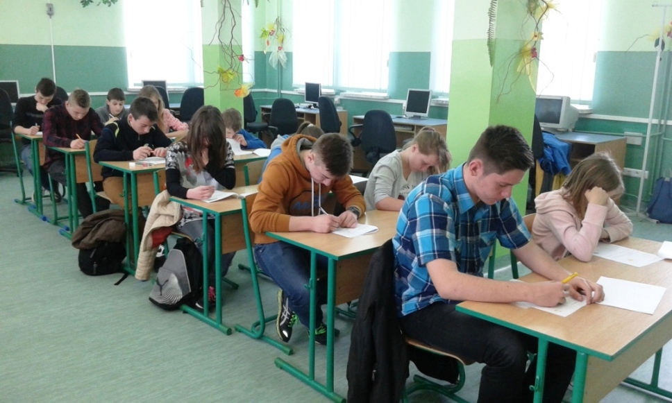 Gimnazjum reprezentowali: Kamil Kozieł, Aleksandra Kozieł i Aleksandra Lodowska. Nasza drużyna po części teoretycznej była bezkonkurencyjna. Ostatecznie wywalczyła II miejsce.