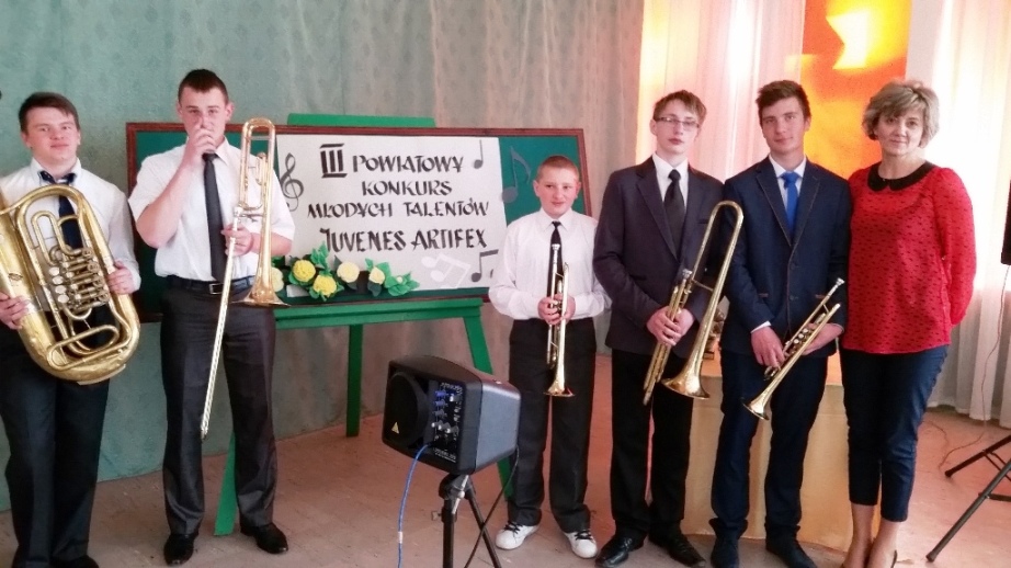 Młodzi artyści z terenu powiatu prezentowali się w dwóch kategoriach: wokalnej i instrumentalnej. Naszą szkołę reprezentowali: Mateusz Pizoń, Dariusz Bielecki, Mateusz Syc z klasy III oraz Mateusz Rudnicki i Adam Syc - uczniowie klasy II.