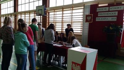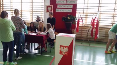 Wybory poprzedzone zostały akcją profrekwencyjną, której celem było zachęcenie osób uprawnionych do głosowania, aby wzięły udział w wyborach. Akcja prowadzona była w szkole i poza nią. Nasz kolega Patryk Serafin wcielił się w role człowieka – urny, który w ramach akcji rozdawał ulotki reklamowe i zapraszał do udziału w wyborach prezydenckich.