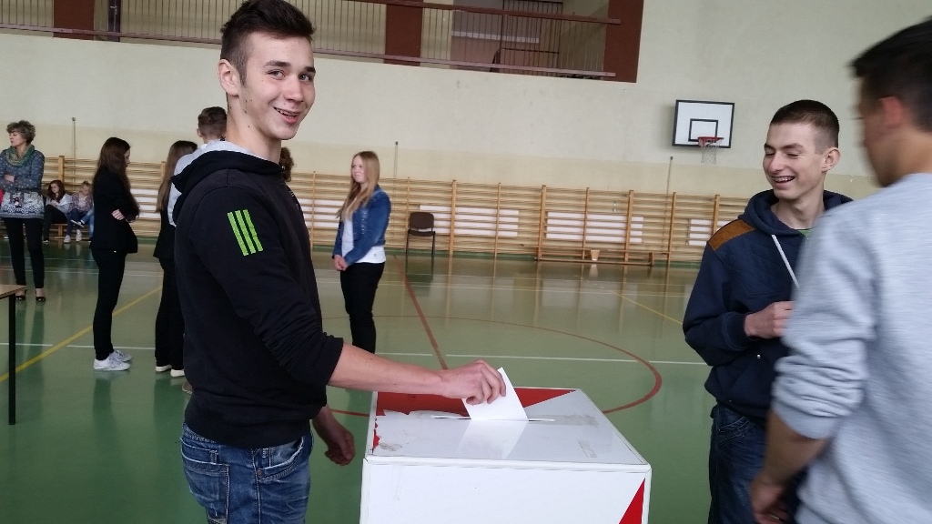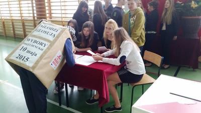 30.04.2015 r. Samorząd Uczniowski gimnazjum przeprowadził szkolne wybory prezydenckie w ramach programu edukacji wyborczej "Młodzi glosują".