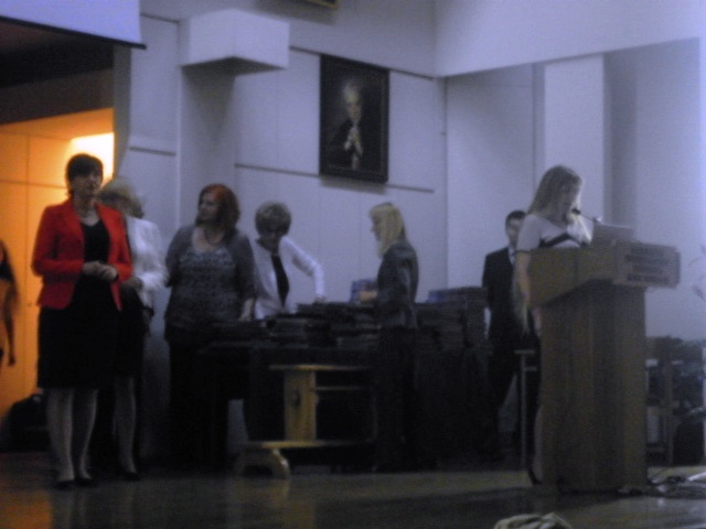 Wraz z innymi laureatami i przybyłymi gośćmi obejrzała też okazjonalny występ dzieci z lubelskich szkół, w tym inscenizację przedstawiającą drogę dziecka od narodzin do sukcesu konkursowego zawierającą elementy humorystyczne.