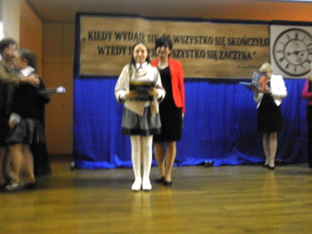 Laureatem Wojewódzkiego Konkursu z Ortografii została w roku szkolnym 2014/2015 Magdalena Kowalik (VI). Podczas uroczystej gali w dniu 14.05.2015 r. w Lublinie otrzymała od Pani Kurator Oświaty dyplom i cenną nagrodę rzeczową z życzeniami, aby twórcza pasja w zdobywaniu wiedzy i umiejętności przyniosła kolejne sukcesy, satysfakcję oraz mobilizację do dalszej pracy, a także stworzyła okazję do efektywnego uczestnictwa w życiu społecznym.