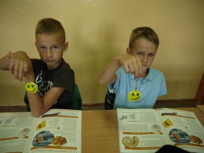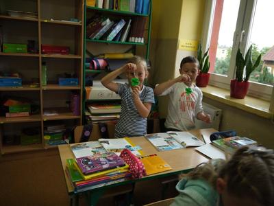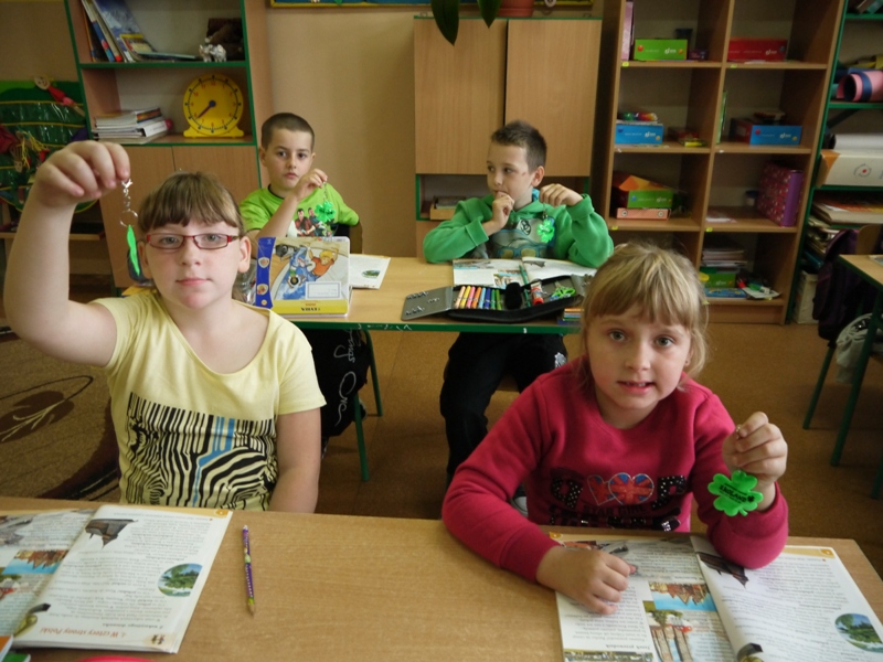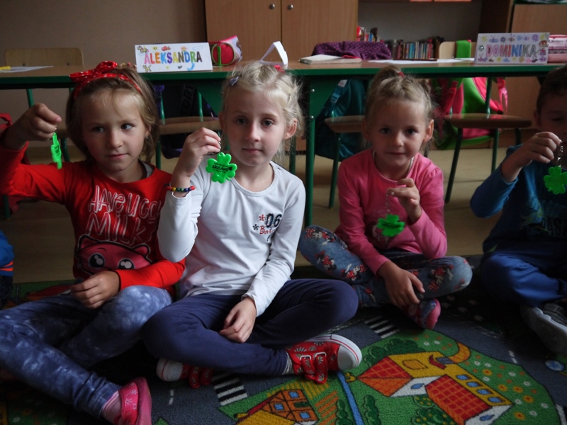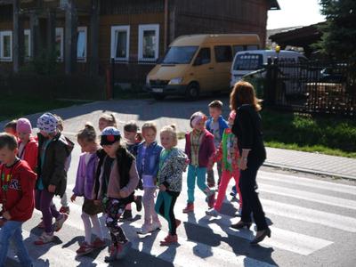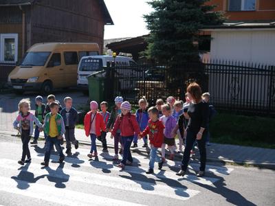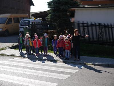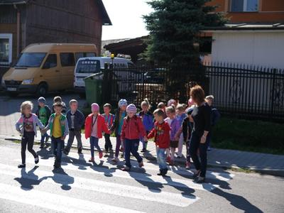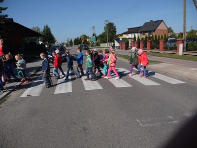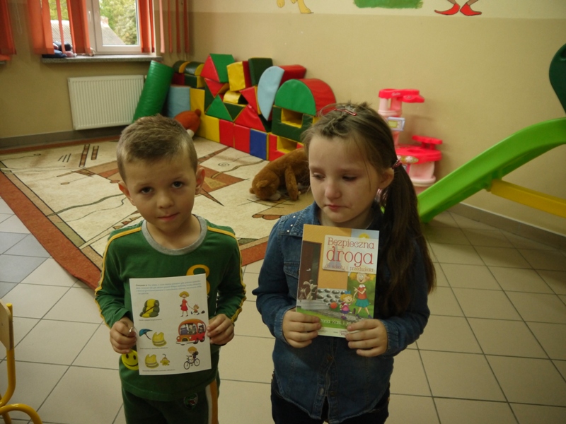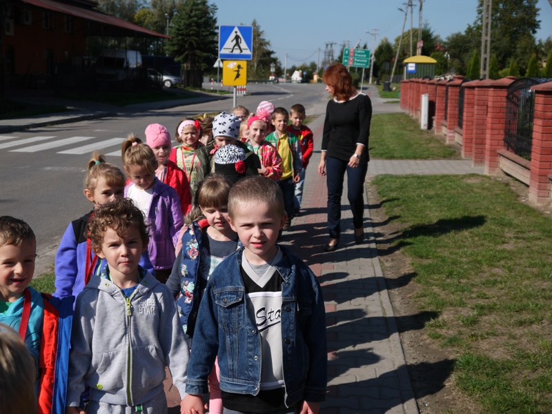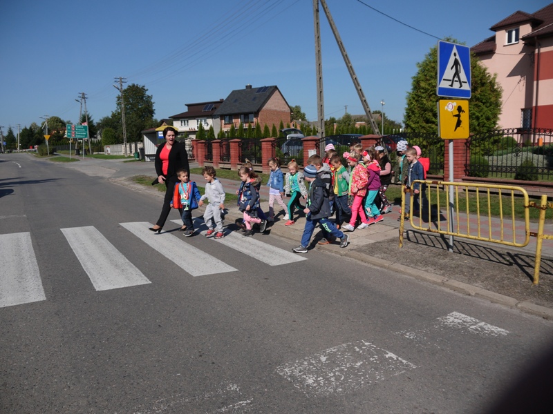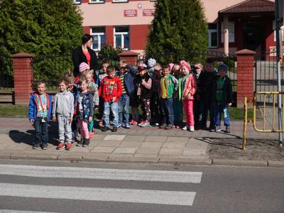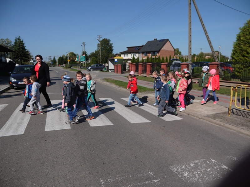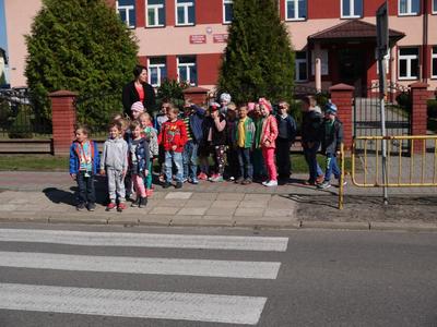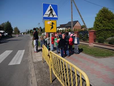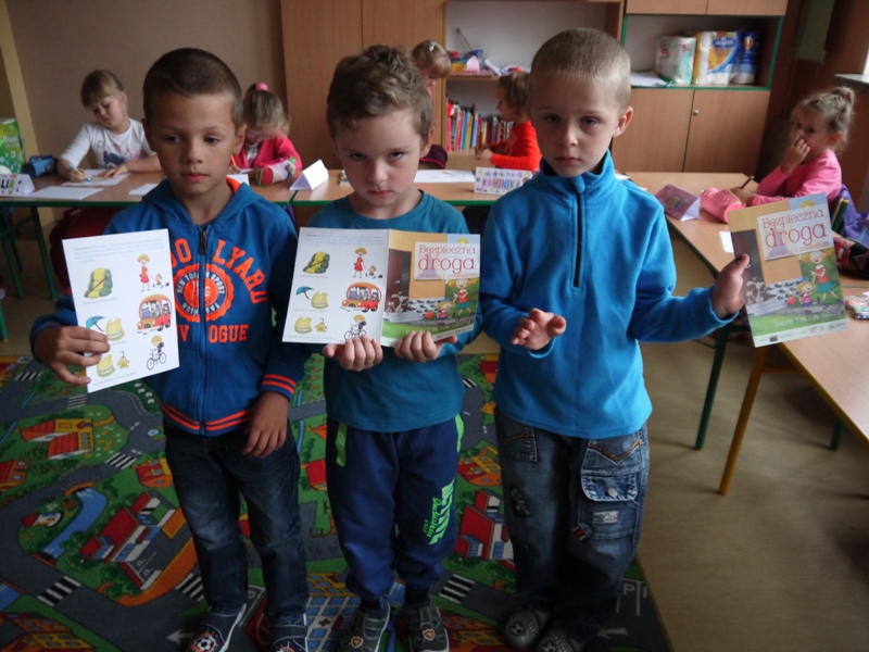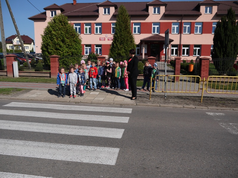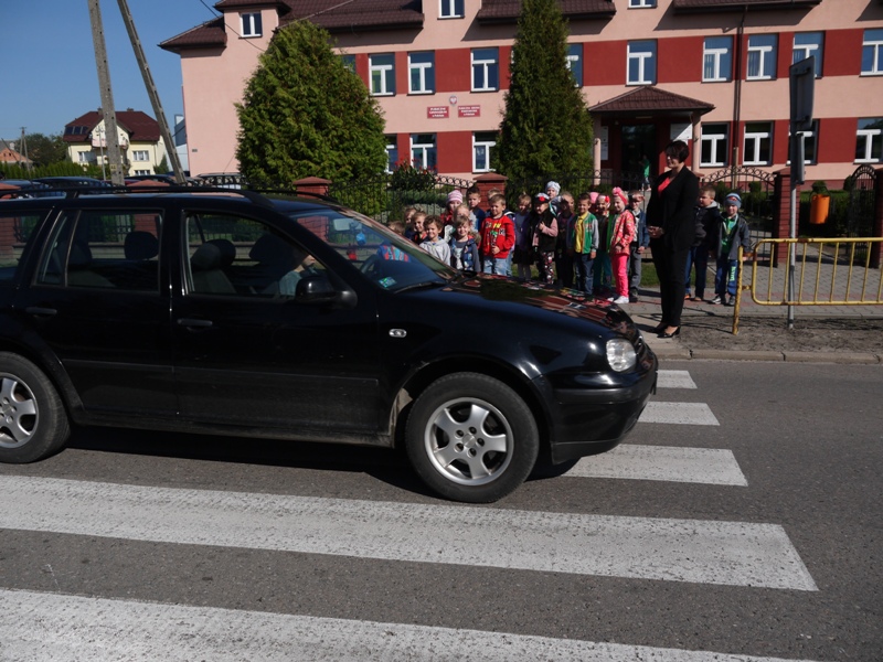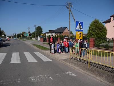 Wręczaniu znaczków towarzyszyły pogadanki na temat bezpieczeństwa dzieci ,połączone z krótkim instruktarzem prawidłowego przechodzenia przez jezdnię. Aby być bardziej widocznymi , uczniowie z pomocą wychowawców klas przypięli odblaski do plecaków.
