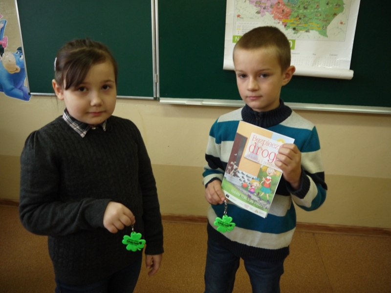 W trosce o bezpieczeństwo dzieci podczas drogi do szkoły i ze szkoły do domu nasi najmłodsi uczniowie z klas 0 - III otrzymali znaczki odblaskowe oraz broszurki przypominające zasady bezpiecznego poruszania się po drodze.