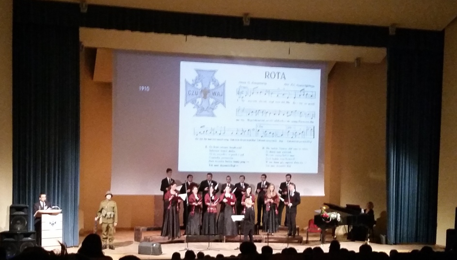 Nasz udział w koncercie był wyjątkową podróżą do przeszłości, opowieścią o niezwykłych dziejach naszego kraju przekazaną melodiami utworów takich jak: „Bogurodzica’’, „Gaude Mater Polonia’’, „Idzie żołnierz borem, lasem’’, „Hymn do miłości ojczyzny’’, „Pożegnanie ojczyzny’’, „Pieśń Legionów Polskich we Włoszech’’, „Boże coś Polskę’’, „Rota’’, „Modlitwa obozowa’’, „Czerwone maki na Monte Casino’’, „Wszystko Tobie ukochana ziemio’’, „Oda do radości’’.