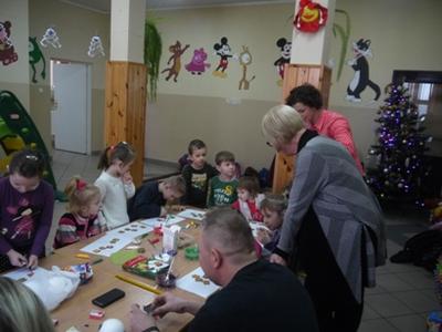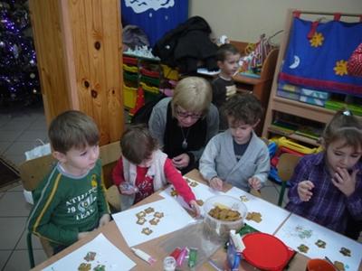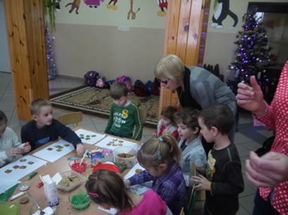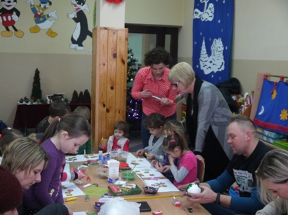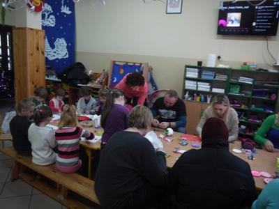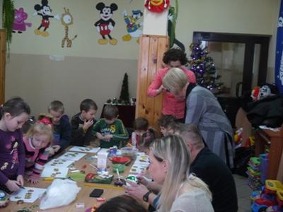 W dniu 16 grudnia w oddziale przedszkolnym i w klasie II B odbyły się zajęcia otwarte - warsztaty z rodzicami. Ich tematem były "Ozdoby i stroiki bożonarodzeniowe". Dzieci wraz z rodzicami lub babciami, przy dźwiękach kolęd, wykonywały piękne ozdoby choinkowe i stroiki świąteczne oraz dekorowały pierniczki. Świąteczne spotkania przebiegły w miłej atmosferze i miały na celu wychowywanie najmłodszych w poszanowaniu tradycji oraz podkreślenie znaczenia więzi rodzinnych.