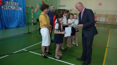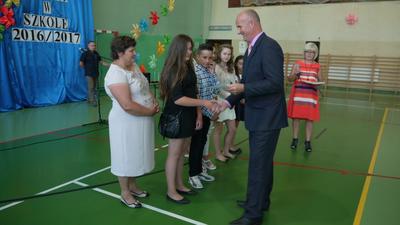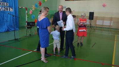Podczas uroczystości odbyło się również uroczyste rozdanie stypendiów naukowych i sportowych za uzyskane osiągnięcia w drugim semestrze roku szkolnego 2015/2016, które wręczyli Wójt Gminy oraz Jadwiga Spryszak i Marta Plichta.