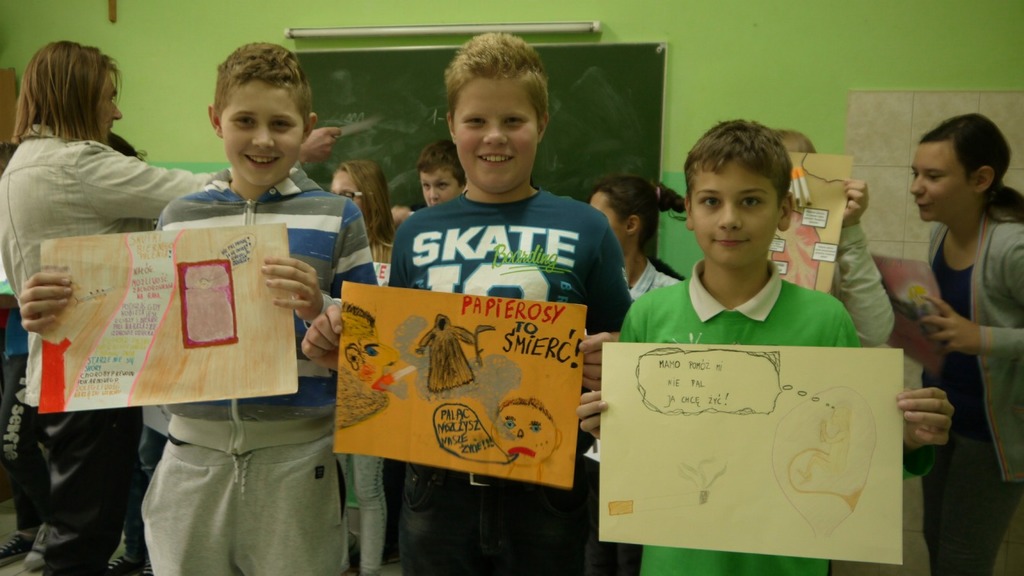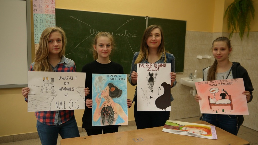 W bieżącym roku szkolnym, już po raz kolejny, nasi uczniowie zarówno ze szkoły podstawowej jak i gimnazjum biorą udział w XIII edycji konkursu plastycznego pod hasłem "Zdrowy, wolny od dymu tytoniowego styl życia".