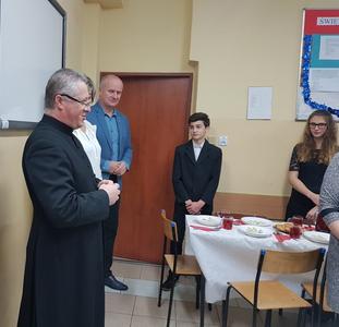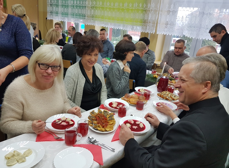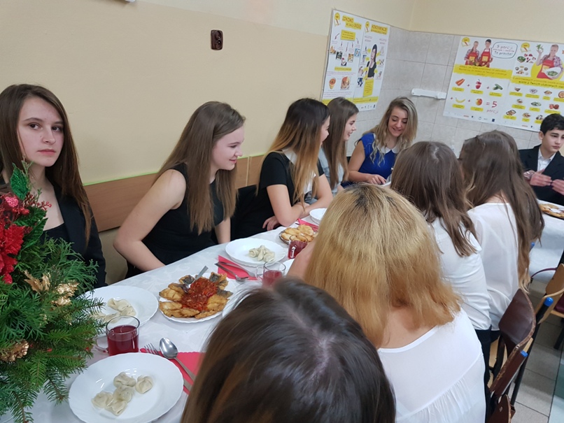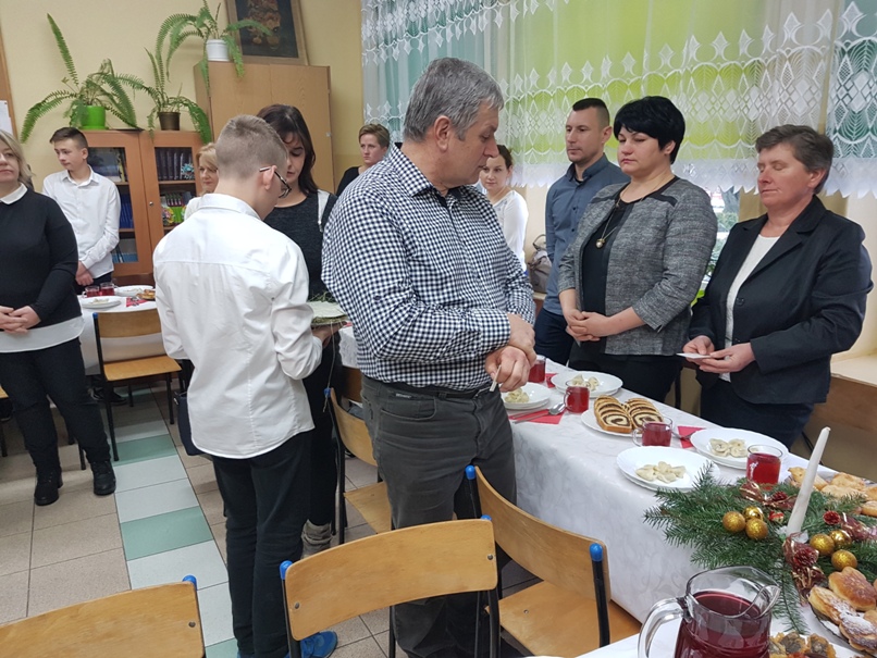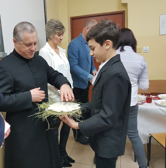 Najważniejszą częścią spotkania było podzielenie się opłatkiem – symbolem zgody i pojednania. Słowa ewangelii, wspólne śpiewanie kolęd, wigilijne pyszności przygotowane przez rodziców i świąteczne życzenia wprowadziły nas w cudowny okres świąt Bożego Narodzenia.