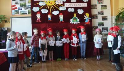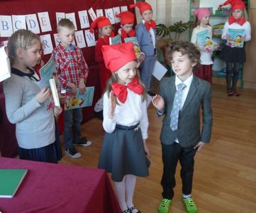 W piątek, 10 lutego najmłodsi uczniowie klasy pierwszej zostali uroczyście przyjęci w poczet czytelników biblioteki szkolnej. Wśród zebranych w świetlicy szkolnej gości była obecna pani dyrektor Jadwiga Spryszak, Rodzice i dzieci z oddziału przedszkolnego.