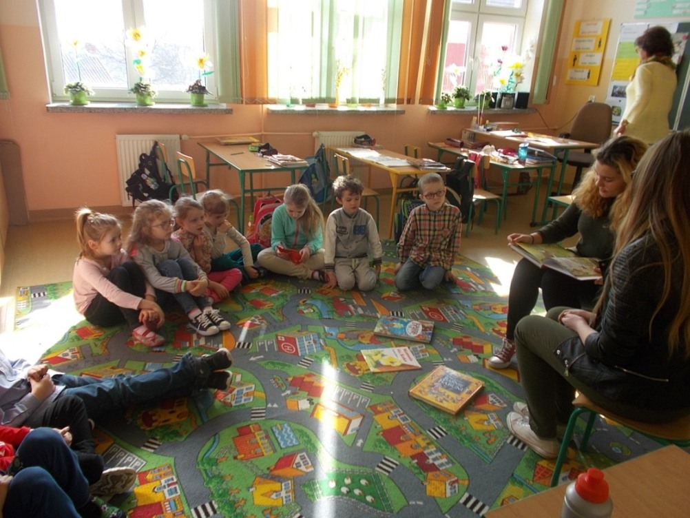 Akcja „Poczytaj mi starszy kolego” ma na celu upowszechnienie czytelnictwa oraz rozbudzenie w dzieciach potrzeby czytania. 6 lutego2017 r. członkowie Aktywu Bibliotecznego czytali swoim młodszym kolegom z klas 0 i I przygotowane wcześniej baśnie, bajki, wiersze i opowiadania. Przygotowali również różne zagadki, quizy, zadania i pytania do przeczytanych tekstów. Wierzymy, że akcja ta zachęci wszystkie dzieci- starsze i młodsze do częstszego sięgania po książki i zaglądania do biblioteki.