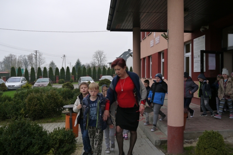 O godzinie 1240 we wtorek rozległ się umówiony sygnał alarmowy. Ciągły 20 sekundowy dźwięk dzwonka. Wszyscy uczniowie wraz z nauczycielami w przeciągu niespełna kilku minut opuścili budynek szkoły i ustawili się w umówionym miejscu przed szkołą. Próbna ewakuacja przebiegła bardzo sprawnie i w/g opracowanych  procedur.