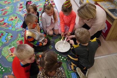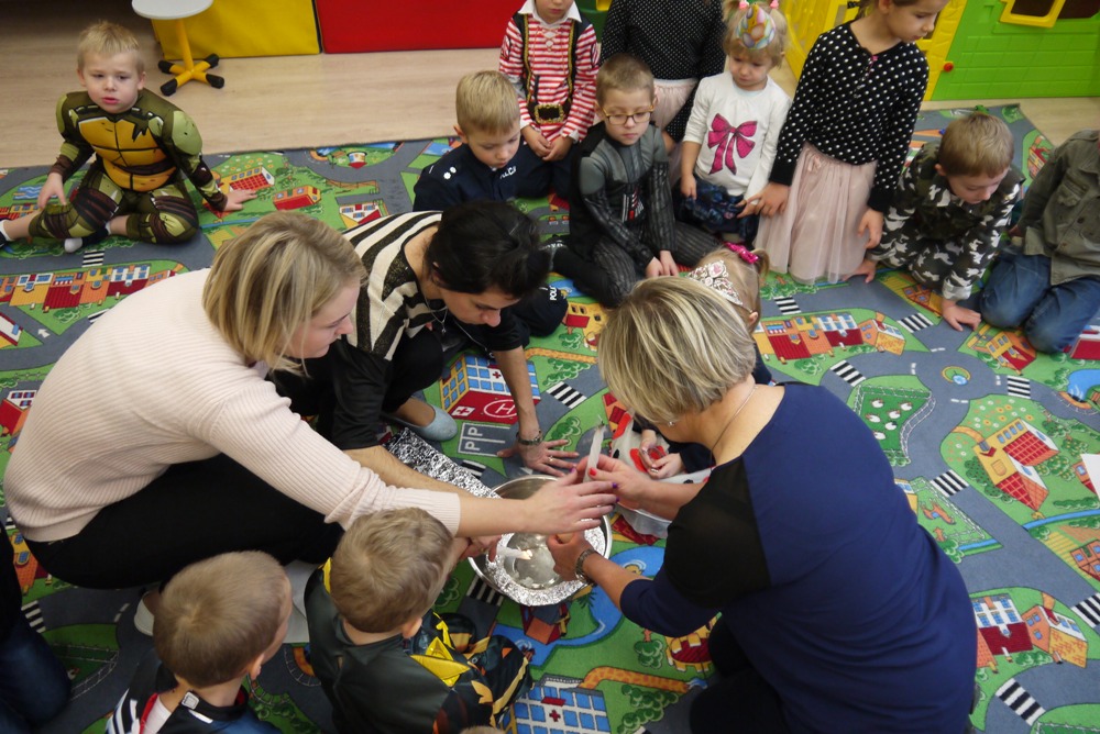 Dzieci i wychowawczynie z oddziału przedszkolnego i klasy 0 dziękują pani Zofii Butryn za okazaną pomoc i zaangażowanie w organizację zabawy andrzejkowej