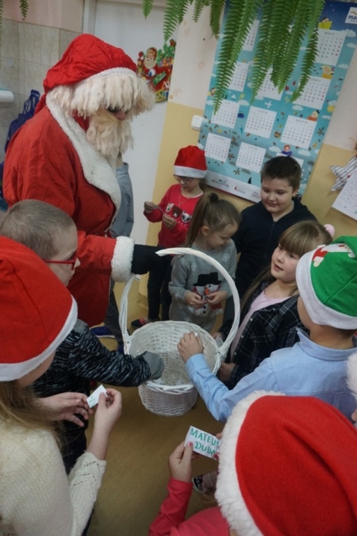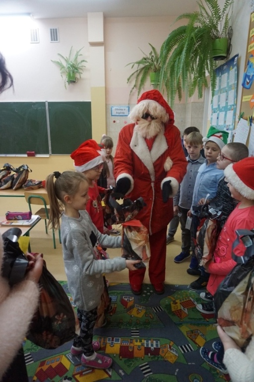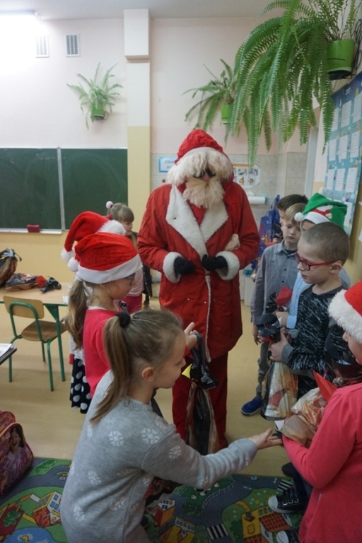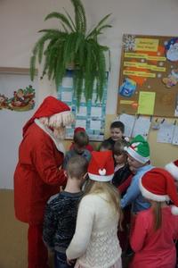 Tak jak w większości szkół, również my 6 grudnia obchodziliśmy Mikołajki . Dzień ten przyniósł wiele radości i uśmiechów na twarzach uczniów bowiem tradycja obdarowywania się drobnymi prezentami jest bardzo miła. Wszyscy, zwłaszcza najmłodsi czekali na Mikołaja z niecierpliwością już od rana. Wreszcie na korytarzu szkolnym słychać było dźwięk dzwoneczków . Długo wyczekiwany gość przybył i wszyscy otrzymali prezenty, a to oznacza, że dzieci w tym roku były bardzo grzeczne. Miejmy nadzieję, że będą takie nadal bo następne Mikołajki już za rok, a przecież czas tak szybko mija.
