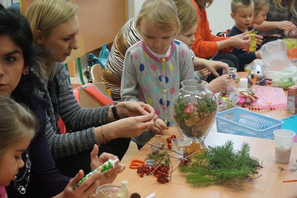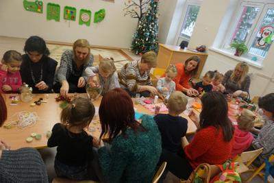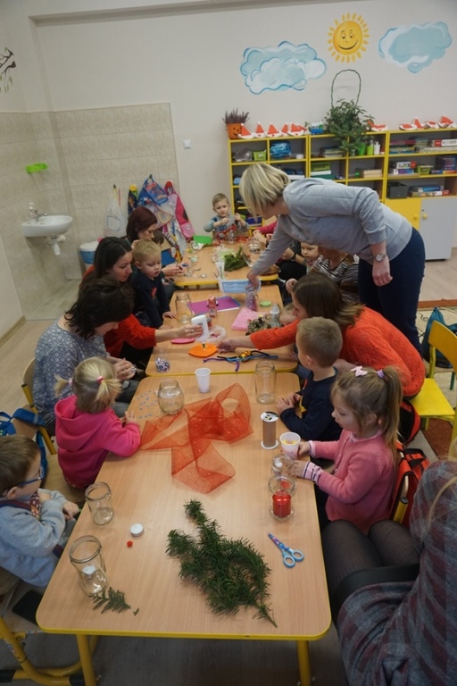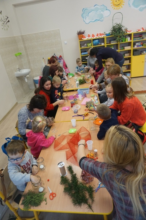 11 grudnia nasze przedszkole zmieniło się na chwilę w warsztat artystyczny. W miłej świątecznej atmosferze, przy pięknie udekorowanej choince dzieci wraz z rodzicami wykonywały świąteczne lampiony. Wszystkie prace były wykonane w sposób interesujący i unikatowy. Celem spotkania było pokazanie, że z najprostszych materiałów można stworzyć wyjątkowe ozdoby świąteczne. Warsztaty miały też na celu lepsze zintegrowanie grupy oraz rozwijanie współpracy z rodzicami.