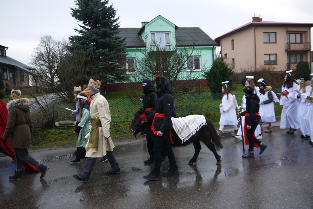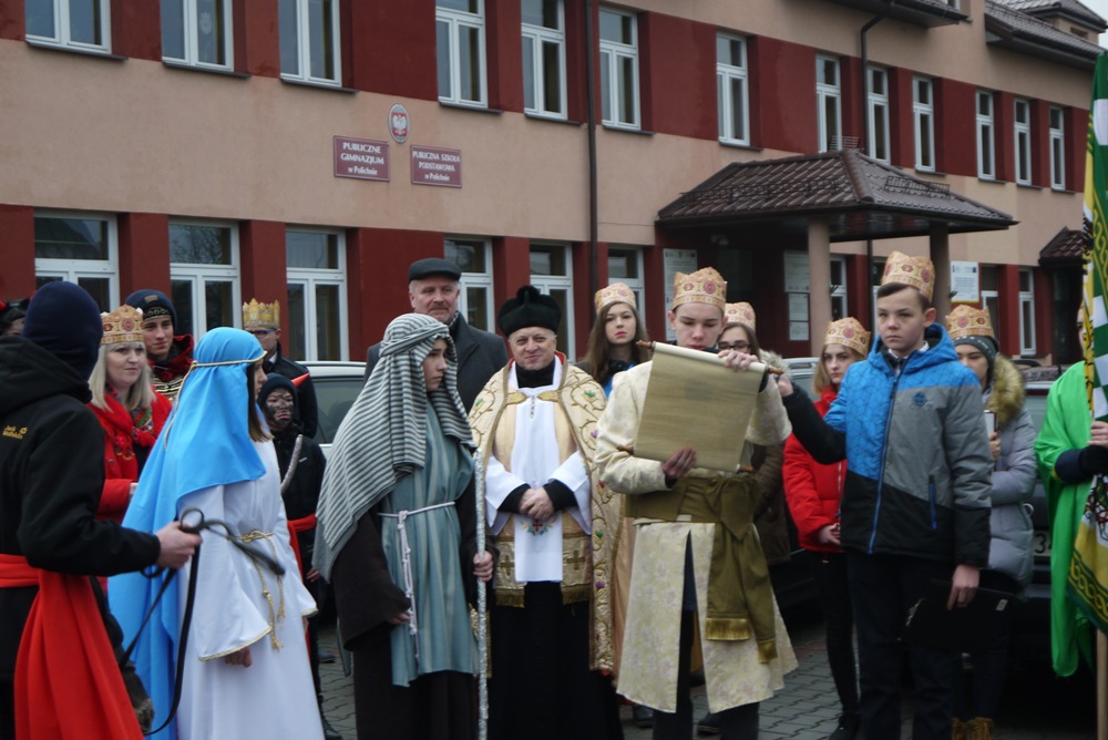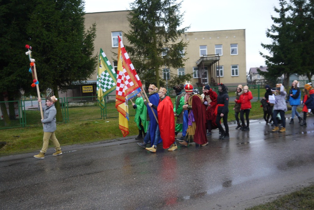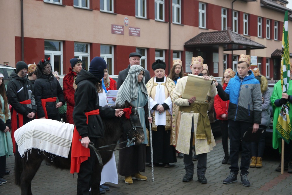 6 stycznia w Święto Objawienia Pańskiego uczestniczyliśmy w Orszaku Trzech Króli. Jego organizatorem było Gminne Centrum Kultury w Polichnie. Zgromadzeni po otrzymaniu od organizatorów symbolicznych koron i śpiewników z kolędami wyruszyli z placu przy budynku szkoły. Wymarsz poprzedziła krótka scenka biblijna, których na trasie przemarszu odegrano jeszcze trzy. Zostały one przygotowane przez dyrektor GCK panią Ewę Białoń z udziałem naszych uczniów. Nad bezpieczeństwem uczestniczących w korowodzie czuwali strażacy z OSP w Polichnie i w Blinowie. Po dojściu do kościoła parafialnego wszyscy udali się na mszę św. odprawianą przez księdza proboszcza Krzysztofa Piskorskiego. Zakończeniem orszaku był przemarsz do budynku GCK, gdzie na każdego uczestnika czekał ciepły poczęstunek.