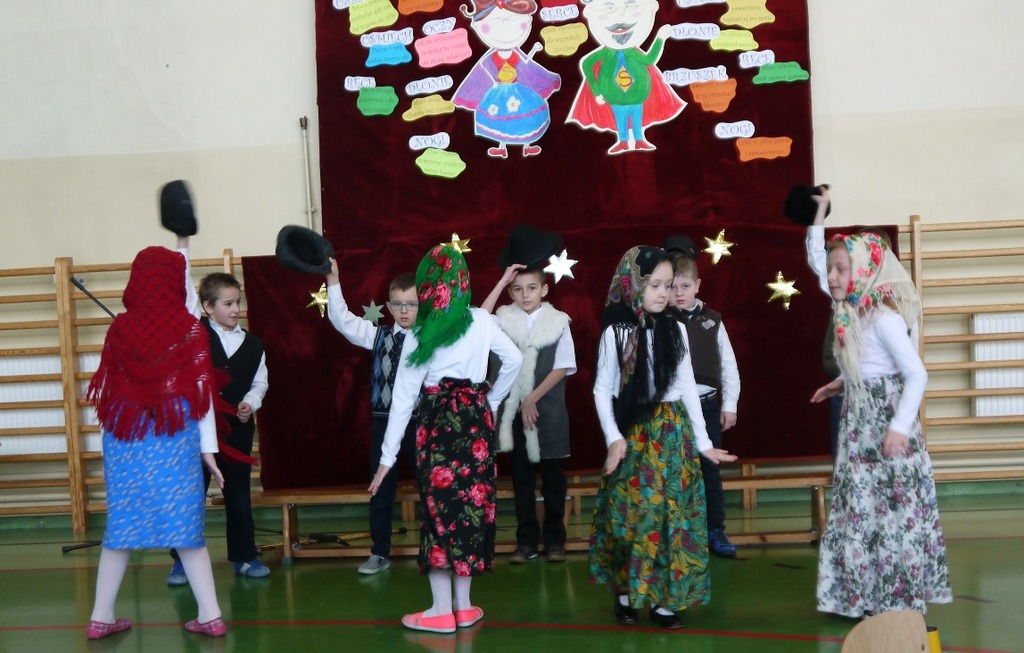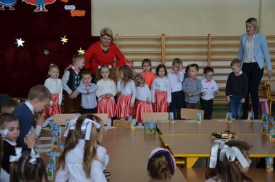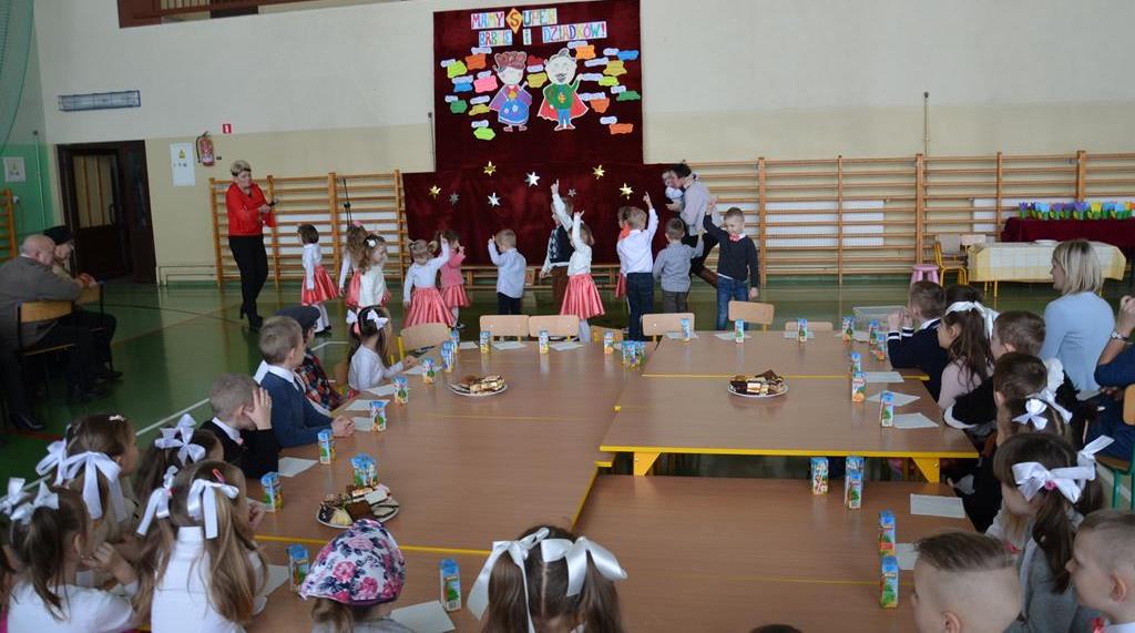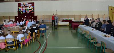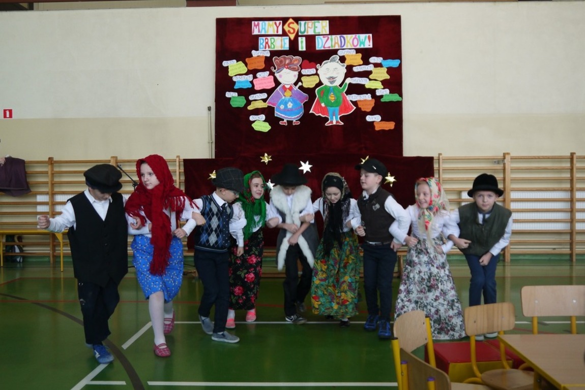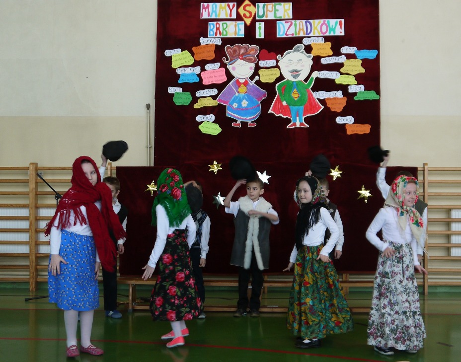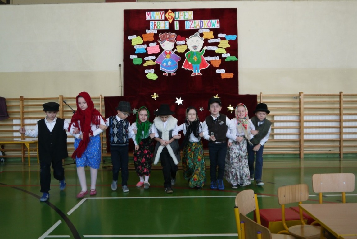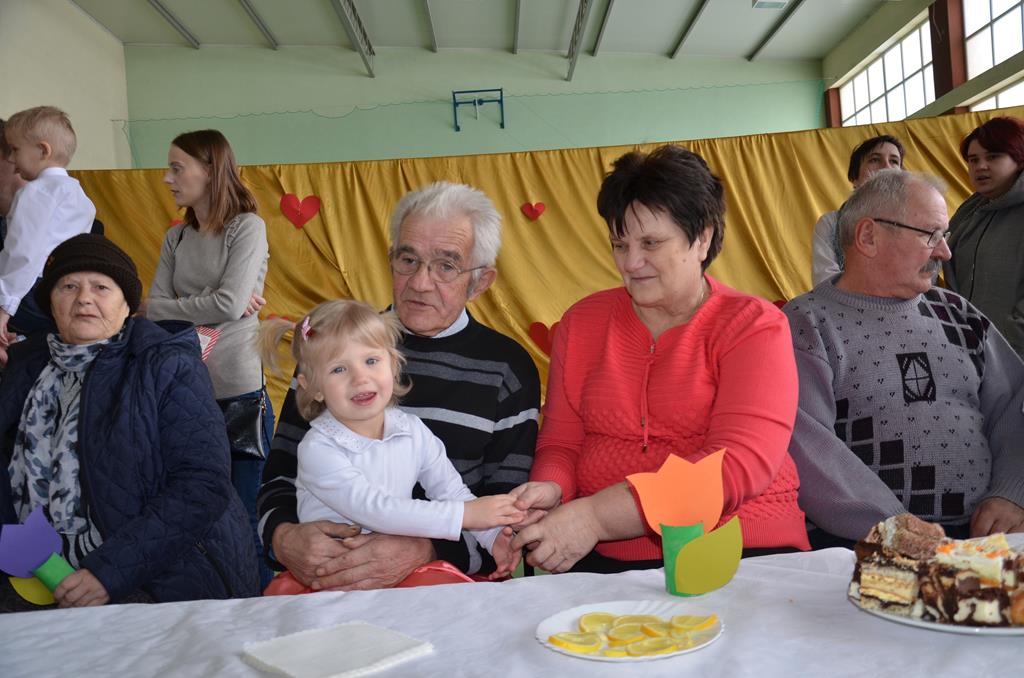 Dziadkowie są niewątpliwie dla swoich wnuków wielkim skarbem. To oni w znaczny sposób przyczyniają się do tego, aby dzieciństwo było w życiu dziecka czasem radosnym i szczęśliwym. Za miłość i czas poświęcony wnukom, należą im się szczególne podziękowania i wyrazy wdzięczności. Wyjątkową okazją do tego jest Dzień Babci i Dziadka. Najmłodsi uczniowie naszej szkoły uczcili to radosne święto, zapraszając babcie i dziadków na uroczyste spotkanie, które miało miejsce 24 i 25 stycznia. Dyrektor Szkoły pani Jadwiga Spryszak ciepło powitała zaproszonych gości, w tym Wójta Gminy pana Artura Jaskowskiego. Przedszkolaki i uczniowie klas I i II pokazali przed zgromadzoną publicznością swoje umiejętności aktorskie, wokalne i taneczne. Dumni dziadkowie ze wzruszeniem podziwiali występy swoich pociech, które na koniec pobiegły do nich z życzeniami, uściskami i upominkami. Dopełnieniem uroczystości był słodki poczęstunek przygotowany przez mamy. Atmosfera spotkania była podniosła i pełna radości.