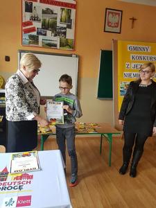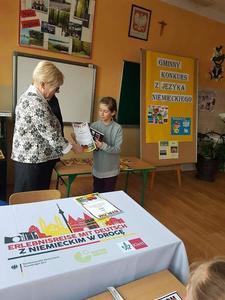 27 lutego odbył się w naszej szkole gminny konkurs z języka niemieckiego pod,patronatem Konsula Republiki Federalnej Niemiec "Deutsch ist einfach". Jego adresatami byli uczniowie szkół terenu naszej gminy uczęszczające do klasy IV i V szkoły podstawowej. Konkurs cieszył się bardzo dużym zainteresowanie. Brało w nim udział 18 uczniów.