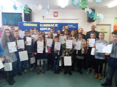Wśród gimnazjalistów zwyciężczynią została Samanta Machulak zaś Kinga Flis zajęła III miejsce. Zarówno laureaci jak i pozostali uczestnicy turnieju otrzymali pamiątkowe dyplomy i atrakcyjne nagrody rzeczowe. Gratulujemy sukcesu przedstawicielom naszej społeczności uczniowskiej i życzymy im powodzenia na eliminacjach powiatowych, które odbędą się 27 marca.