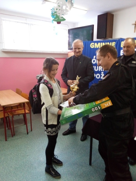 5 marca w Szkole Podstawowej w Blinowie odbyły się gminne eliminacje Ogólnopolskiego Turnieju Wiedzy Pożarniczej pod hasłem „Młodzież zapobiega pożarom”. Wzięli w nich udział uczniowie naszych szkół: Weronika Machulak, Natalia Kułaga, Szymon Żurawski, Samanta Machulak, Laura Lodowska, Kinga Flis. Odnieśli sukces zarówno w grupie wiekowej uczniów szkół podstawowych jak i gimnazjalistów. W pierwszej grupie wiekowej zajęli następujące miejsca: