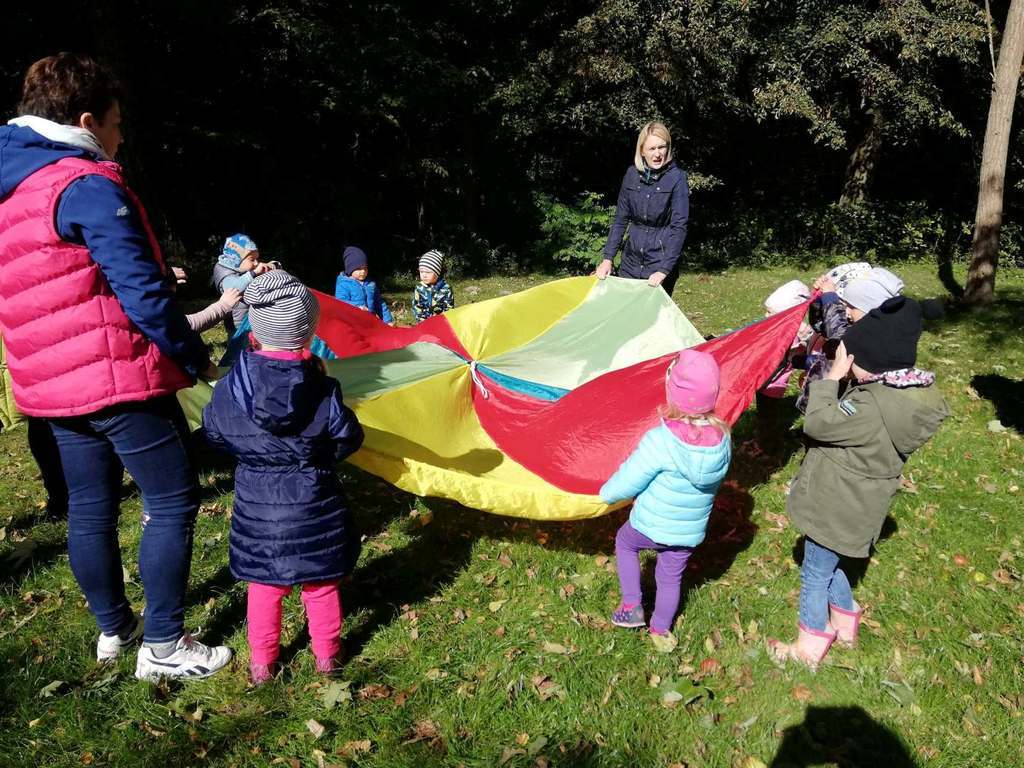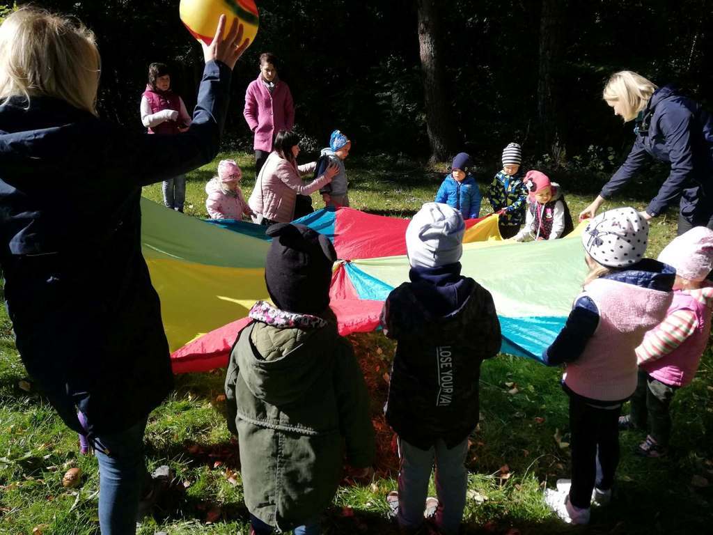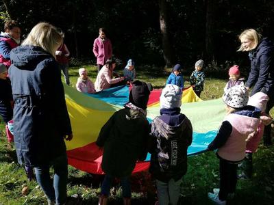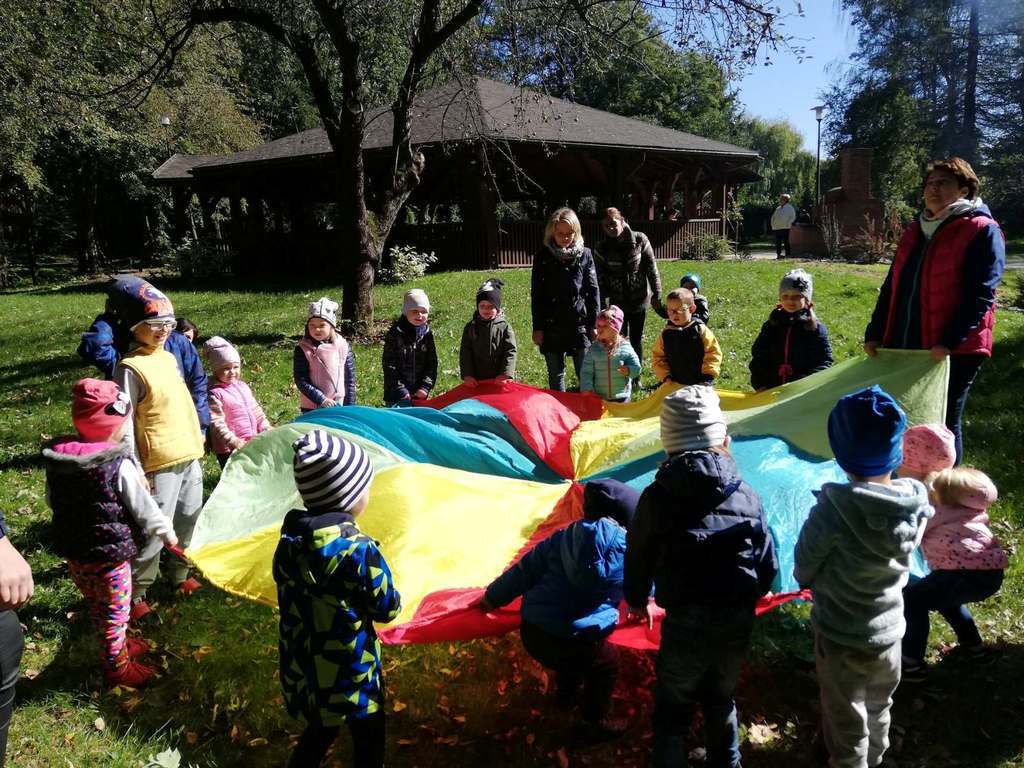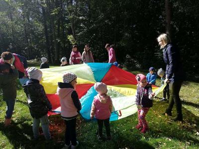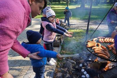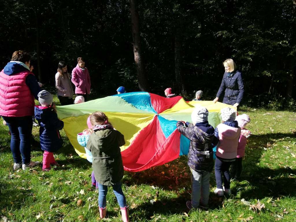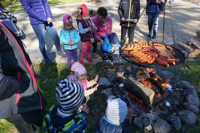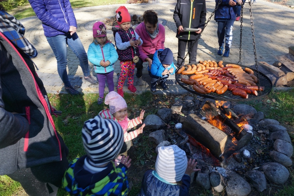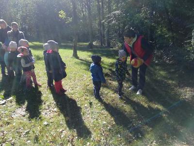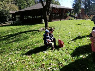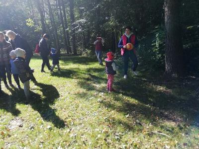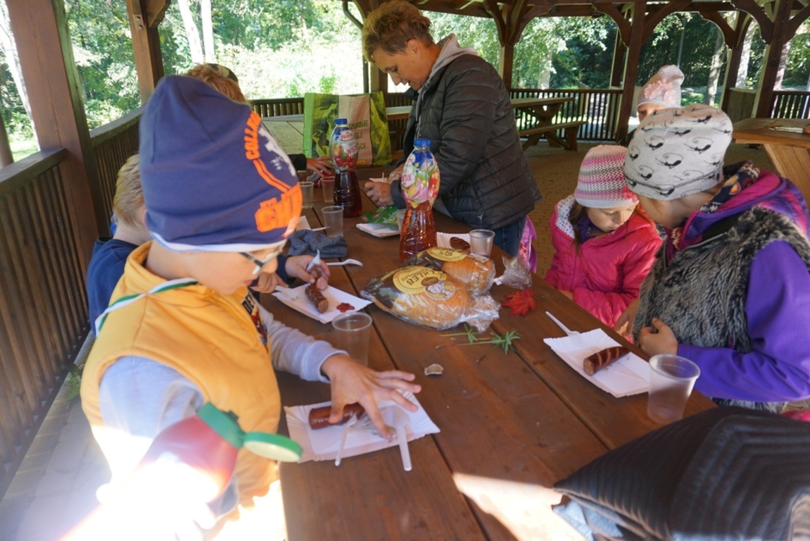 W dniu 26.09.2018 r. dzieci z przedszkola i klasa II wraz ze swoimi wychowawczyniami i rodzicami wyjechały na ognisko integracyjne w punkcie edukacji przyrodniczo - leśnej w Rudkach, które jest częścią Nadleśnictwa Kraśnik. Na miejscu powitał nas pan leśniczy. Na wstępie wygłosił krótką pogadankę. Dzieci dowiedziały się wielu ciekawostek z życia lasu i pracy leśników. Następnie zostaliśmy zaproszeni na spacer po lesie, dzieci obserwowały jakie zmiany zachodzą w przyrodzie jesienią i jak zwierzęta przygotowują się do zimy. Pan leśniczy pokazał nam leśne jeziorko ukryte w gęstwinie drzew, ambonę służącą do obserwacji zwierzyny a także rzadkie gatunki drzew jak np. dąb amerykański.Niektórym udało się znaleźć piękne okazy grzybów.
