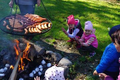 Główną atrakcją naszej wyprawy było wspólne ognisko. Samodzielnie upieczone kiełbaski smakowały wybornie. Po wspólnym posiłku dzieci miały czas na swobodną zabawę i konkursy. Dopisywała nam wspaniała słoneczna pogoda i świetne humory.