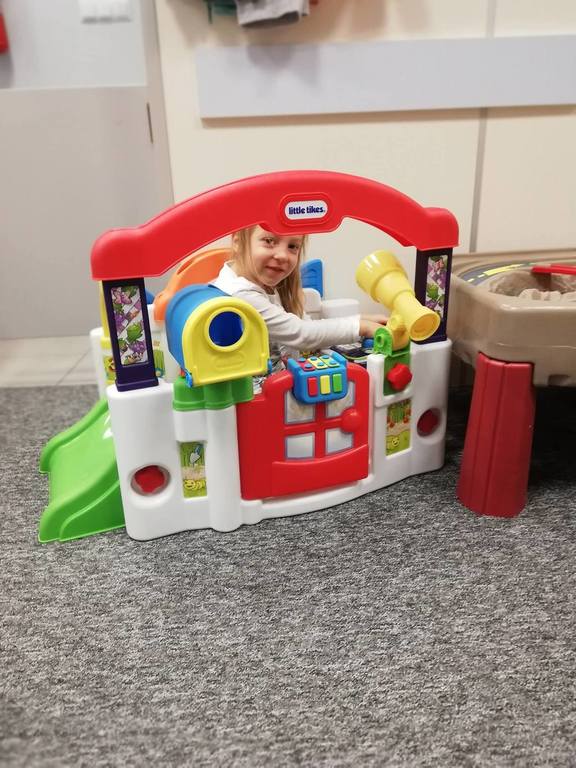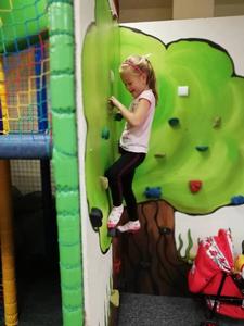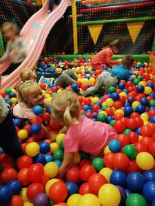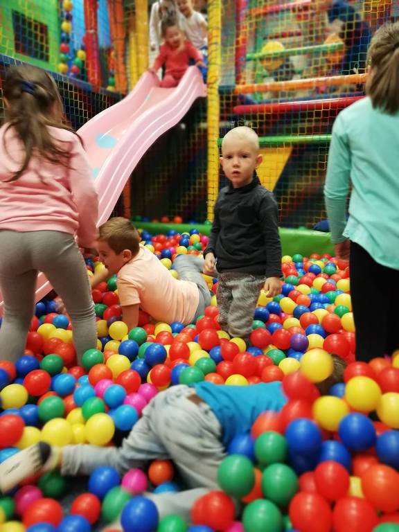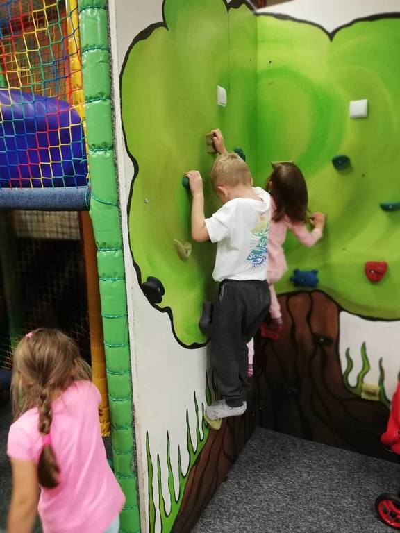 Z okazji Dnia Chłopaka dzieci z przedszkola i zerówki wyjechały do sali zabaw. Dzięki uprzejmości pani Zofii Butryn, która nieodpłatnie zaprosiła nas do ,,Żyrafy'' , dzieci mogły spędzić czas wypełniony atrakcjami. Już sam przejazd dużym autokarem był dla niektórych dzieci atrakcją. Po przyjeździe na miejsce i zapoznaniu się z regulaminem rozpoczęła się zabawa. Każdy mógł znaleźć coś dla siebie: suchy basen z kulkami, zjeżdżalnie, tory przeszkód, zamek rycerski, ścianka wspinaczkowa, duże i małe samochody, klocki, lalki, pacynki i wiele, wiele innych. Po skończonej zabawie każde dziecko dostało na pamiątkę balonik do modelowania. Czas minął bardzo szybko, zadowoleni i pełni miłych wrażeń wróciliśmy do przedszkola.