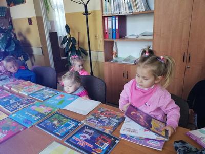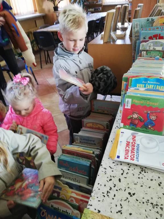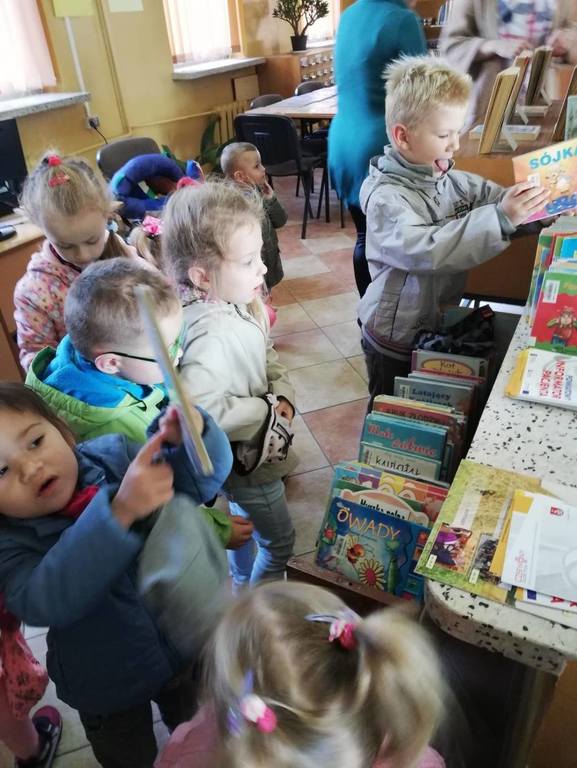 Przedszkolaki z wielką radością zapoznały się z magicznym dla nich miejscem. Kilkoro z nich było wcześniej w bibliotece ze swoimi rodzicami, ale dla zdecydowanej większości była to pierwsza wizyta wśród tylu książek. Tematem spotkania było zapoznanie maluchów z biblioteką. Przedszkolaki zwiedziły placówkę, z wielkim zainteresowaniem przeglądały książki znajdujące się na półkach, ale szczególnie zainteresował ich dział dla najmłodszych. Dzieci dowiedziały się, co należy zrobić, aby stać się czytelnikiem biblioteki oraz jak należy się w niej zachować. Zobaczyły także jak wygląda karta czytelnika oraz poznały zasady wypożyczania książek. Każdy przedszkolak wyszedł z biblioteki z uśmiechem na twarzy, ale przede wszystkim z obietnicą, że wróci, aby móc się zapisać i korzystać z bogatej oferty dla dzieci.