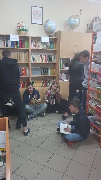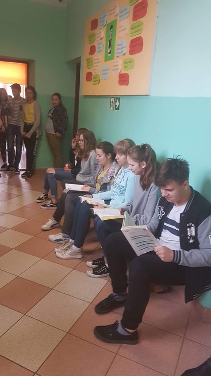 Podczas trwania przerw uczniowie, nauczyciele oraz pracownicy szkoły czytali wybrane przez siebie książki w wybranej przez siebie formie: w gronie klasy, przyjaciół bądź indywidualnie. Wydarzenie czytelnicze uwiecznione zostało zdjęciami.