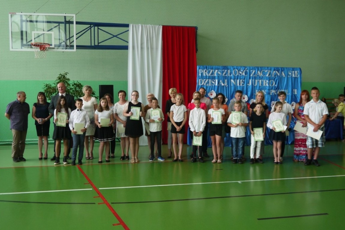 Zakończenie roku szkolnego było również okazją do wręczenia przez wójta gminy pana Artura Jaskowskiego stypendiów naukowych i sportowych dla wyróżniającym się uczniów.