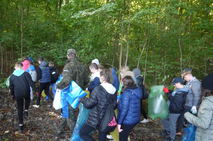 20 września uczniowie klasy VII i VIII pod opieką pani Marty Sokołowskiej i pana Piotra Lewandowskiego udali się do Leśnictwa Mosty, gdzie w ramach zainicjowanej przez Prezydenta Rzeczypospolitej Polskiej Andrzeja Dudę akcji „#sprzątaMY las”, zaopatrzeni w worki rozpoczęli oczyszczanie lasu ze śmieci. Wspierał nas pan Michał Kosikowski - Komendant Posterunku Straży Leśnej. Uczniowie z ogromną werwą i zaciekawieniem zbierali ukryte w lesie pokłady śmieci. Po pracowitych godzinach uczniowie poczęstowani zostali kiełbaskami oraz ciepła herbatą. Pamiętajmy, że również na co dzień możemy dawać dobry przykład i inspirować innych do pozytywnego działania: podczas wizyty w lesie zbierz i wynieś z niego przynajmniej pięć śmieci, pochwal się tym w mediach społecznościowych i zachęć znajomych do podjęcia wyzwania.