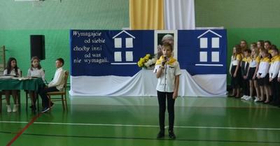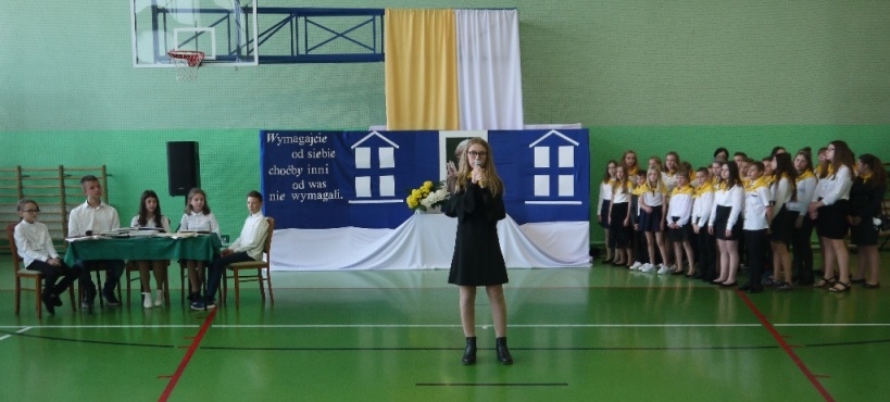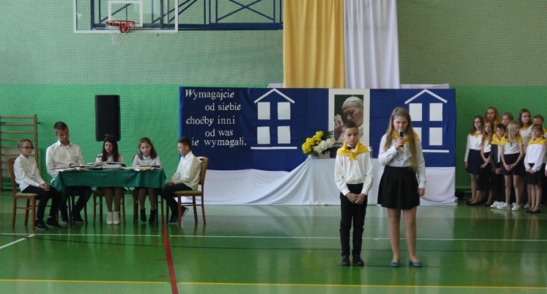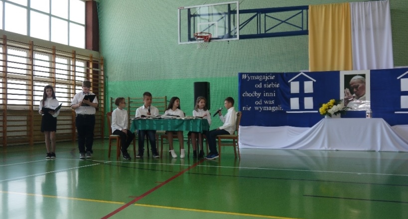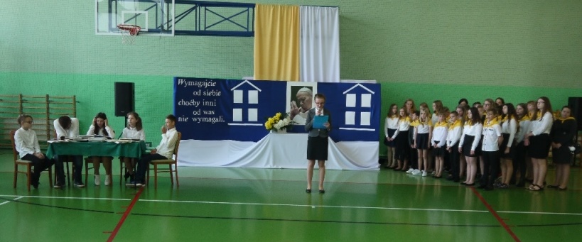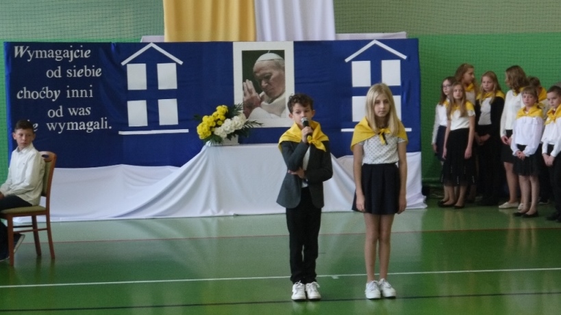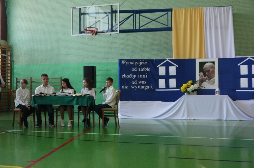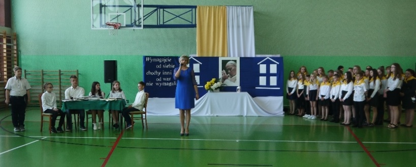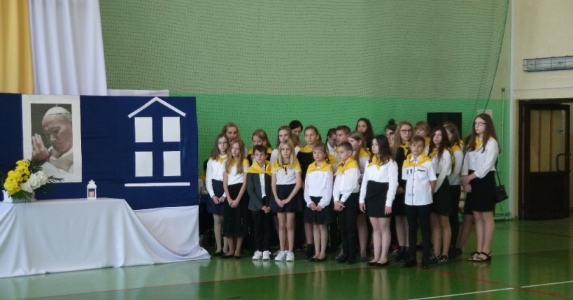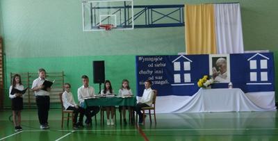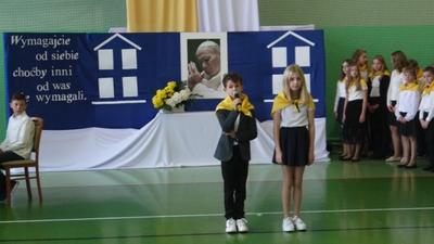 Obchody tego dnia rozpoczęły się uroczystym przemarszem uczniów i nauczycieli wraz ze sztandarem naszej szkoły do kościoła parafialnego, gdzie o godzinie 9.00 ksiądz kan. Krzysztof Piskorski odprawił Mszę Świętą z okazji 1-ej rocznicy nadania szkole imienia św. Jana Pawła II . O oprawę liturgii zadbali uczniowie naszej szkoły, którzy złożyli dary ołtarza a młodzież ze scholi zajęła się oprawą muzyczną. W uroczystości udział wzięli: Przewodniczący Rady Gminy Szastarka Pan Michał Kosikowski, Sekretarz Urzędu Gminy Pani Jadwiga Wielgus, Dyrektor GZOPO Pani Monika Łukasik, dyrektor naszej szkoły Pani Marta Plichta, nauczyciele, uczniowie, rodzice oraz lokalni mieszkańcy. Po zakończonej Eucharystii wszyscy udali się do szkoły gdzie uczniowie zaprezentowali montaż słowno-muzyczny, którego celem było wyrażenie Papieżowi - św. Janowi Pawłowi II naszej wielkiej wdzięczności oraz przypomnienie Jego nauczania, bowiem Karol Wojtyła był nie tylko wybitnym kapłanem, teologiem, ale także nauczycielem i wychowawcą.