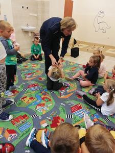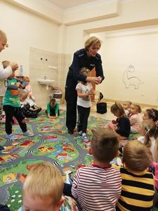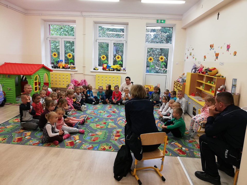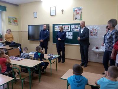 W ramach profilaktycznych działań, mających na celu bezpieczeństwo uczniów jako uczestników ruchu drogowego 26 września w naszej szkole miało miejsce spotkanie z policjantami. W spotkaniu prowadzonym przez panią Dorotę Więcławską oraz dzielnicowego pana Piotra Dudkę uczestniczyli najmłodsi uczniowie. Prowadzący przypomnieli przede wszystkim o podstawowych zasadach bezpiecznego uczestnictwa w ruchu drogowym. Ponadto zwrócili uwagę na niebezpieczeństwa, jakie mogą czyhać na dzieci w kontaktach z nieznajomymi, oraz na zagrożenia ze strony zwierząt. Dzieci skorzystały również z możliwości obejrzenia radiowozu policyjnego oraz sprzętu i akcesoriów używanych w pracy policjantów. Funkcjonariuszom z Komendy Powiatowej Policji w Kraśniku serdecznie dziękujemy za troskę o bezpieczeństwo naszych dzieci.