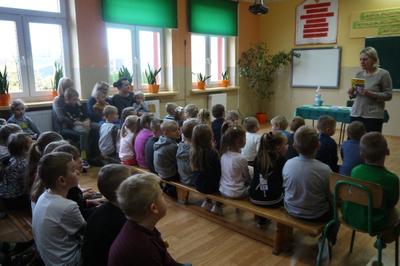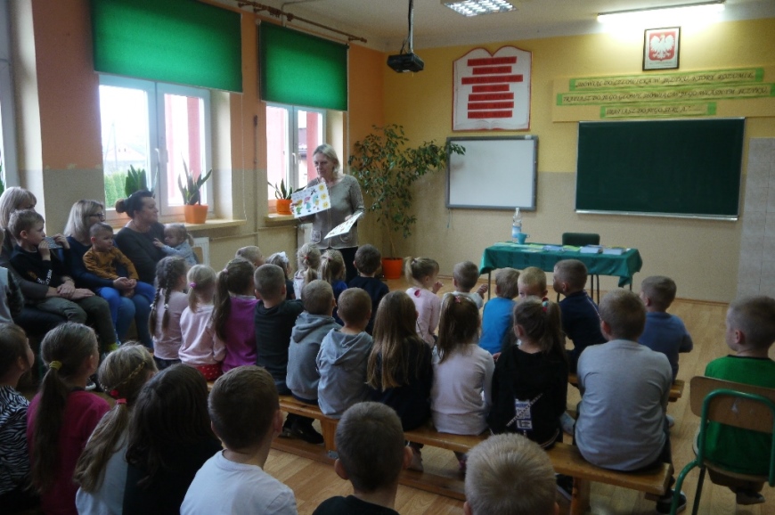 7 listopada odbyło się w naszej szkole spotkanie z poetką. Mieliśmy zaszczyt gościć panią Teresę Mazur- autorkę wierszy dla dzieci, która spotkała się z uczniami klas 0- III. Podczas spotkania zaprezentowała kilka książeczek z wierszami jej autorstwa, do których również sama wykonała ilustracje. Dzieci z wielką uwagą słuchały wierszy czytanych przez poetkę.