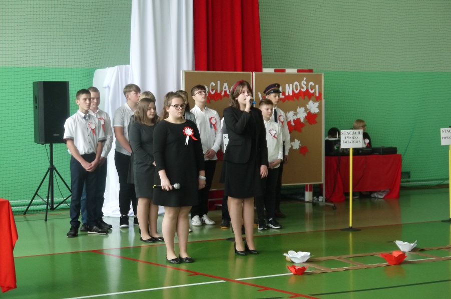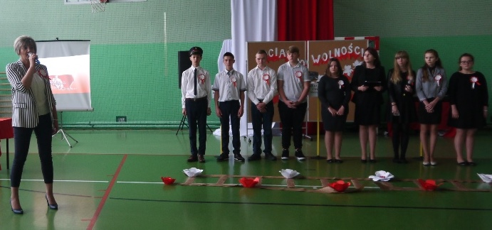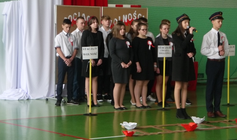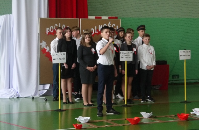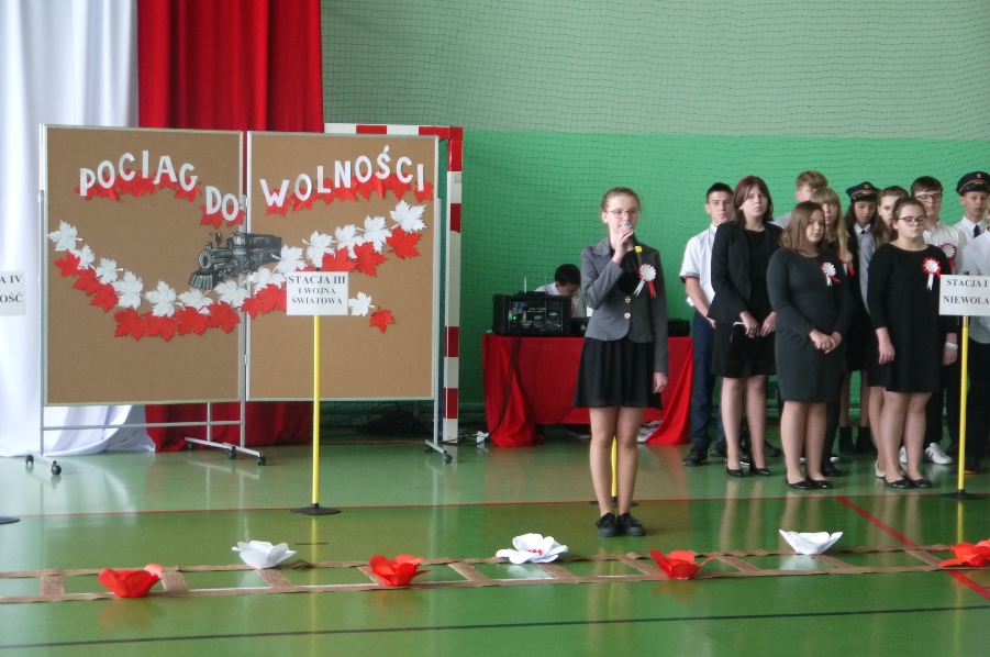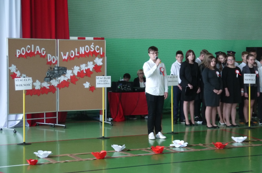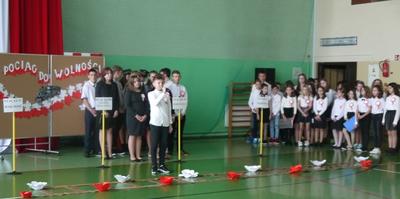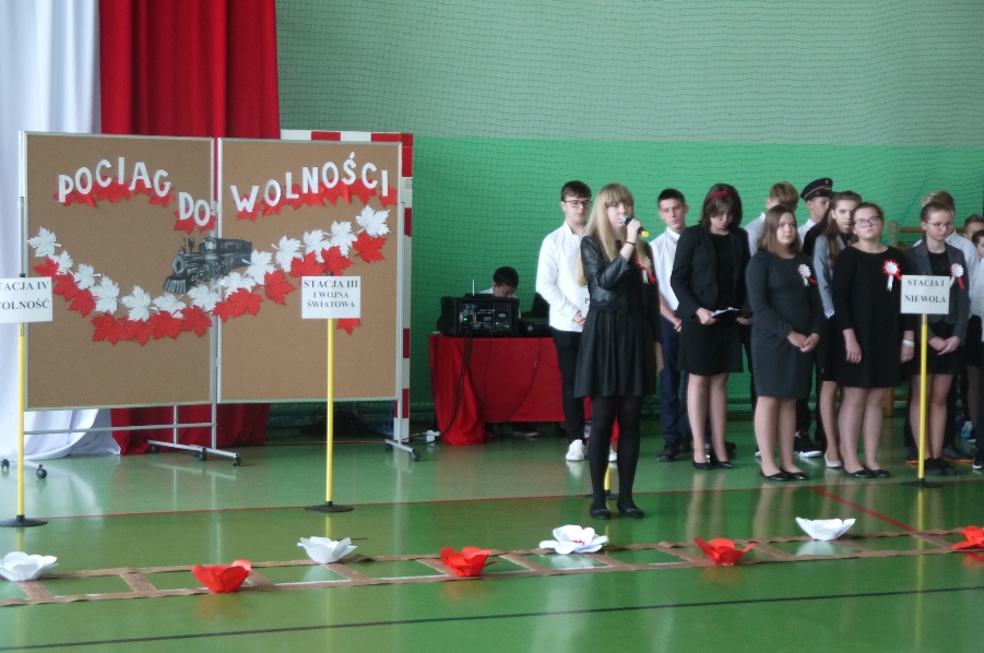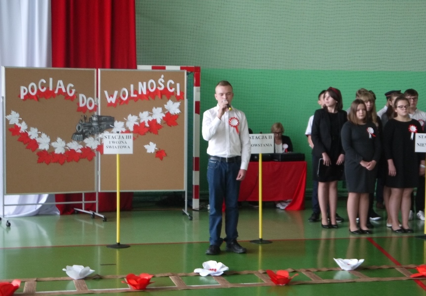 8 listopada społeczność naszej szkoły wzięła udział w uroczystej akademii z okazji 101. rocznicy odzyskania prze Polskę niepodległości. Uczniowie z klasy VIII B w przedstawieniu pt. „Pociąg do wolności” zobrazowali, jak Polacy dążyli do odzyskania suwerenności. Część artystyczna wprowadziła zgromadzonych w atmosferę wydarzeń poprzedzających datę 11 listopada 1918 roku. Recytowane wiersze patriotyczne pozwoliły zrozumieć rozterki i uczucia walczących o wolność. Pieśni patriotyczne ukazały ducha narodu polskiego, który w czasie 123 lat niewoli stale wychodził z inicjatywą walki o Ojczyznę.