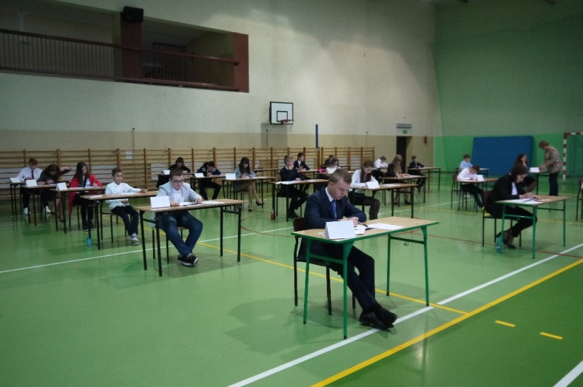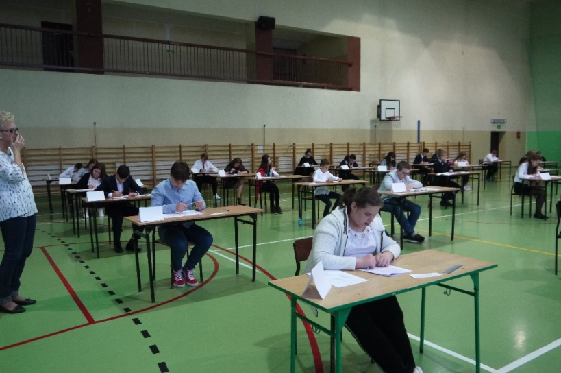 W dniach 20-22 listopada 2019 roku najstarsi uczniowie naszej szkoły przystąpili do próbnego egzamin ósmoklasisty przygotowanego przez wydawnictwo NOWA ERA. Egzamin obejmował testy z języka polskiego, matematyki i języka angielskiego. Dwa pierwsze dni uczniowie spędzili w hali, a test językowy pisali w klasach.