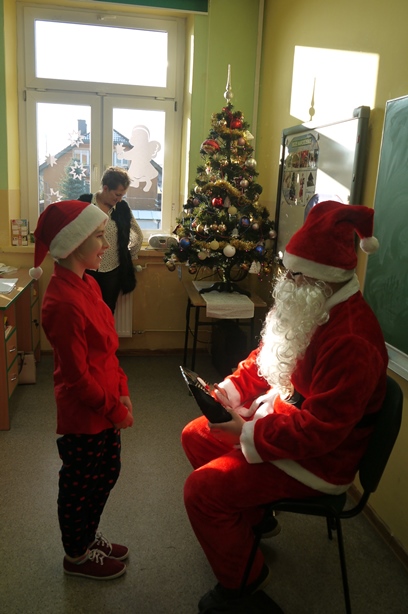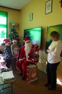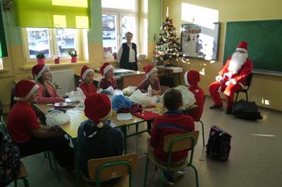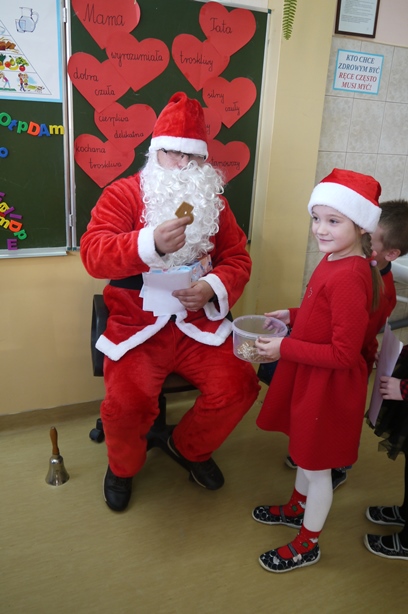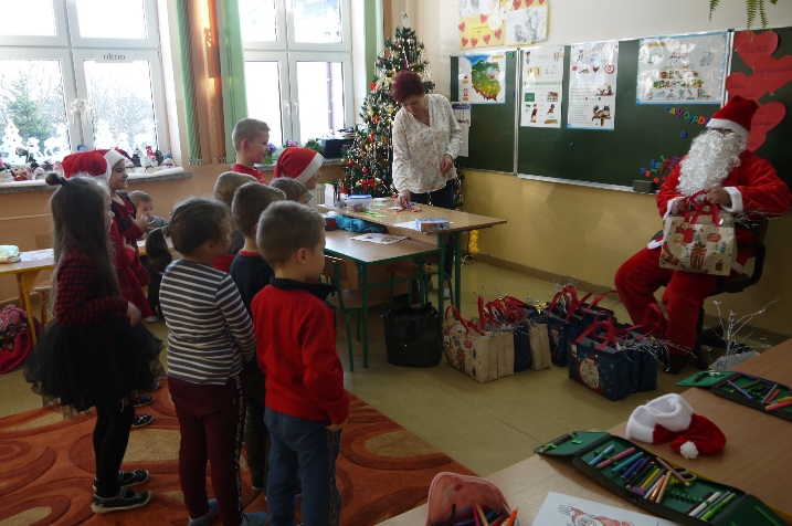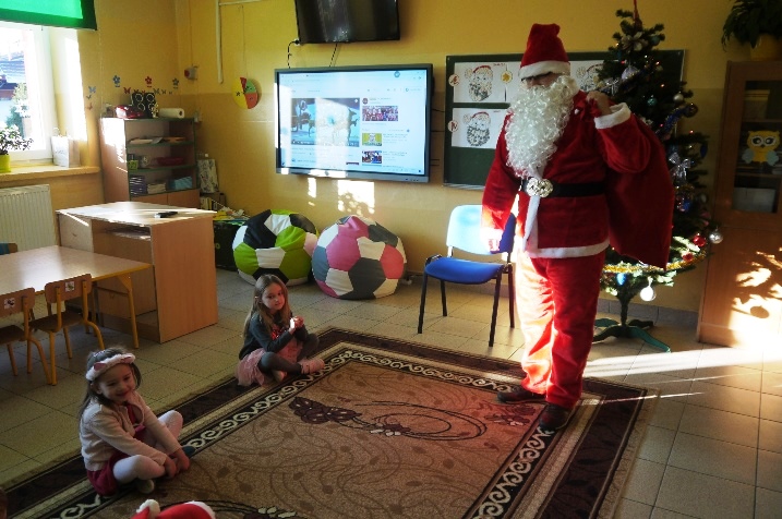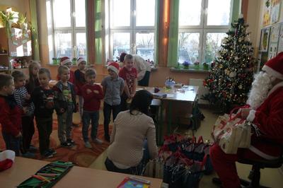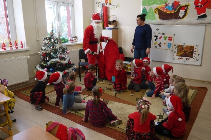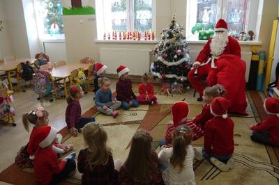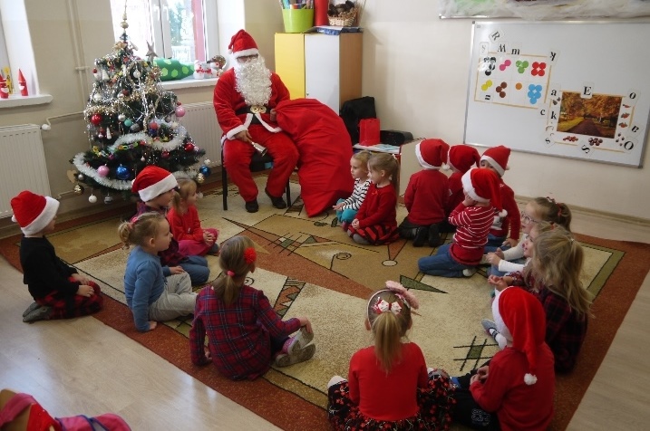 Nadszedł ten radosny dzień, 6 grudnia w naszym przedszkolu pojawił się długo oczekiwany gość - św. Mikołaj. Gość z Dalekiej Północy wywołał wiele radości i uśmiechu na twarzach przedszkolaków. Mikołaj obdarował wszystkie dzieci wspaniałymi prezentami. Miłym akcentem spotkania były wspólne zdjęcia z naszym goście. Na koniec spotkania św. Mikołaj życzył wszystkim dzieciom oraz Paniom zdrowych i radosnych Świąt Bożego Narodzenia oraz obiecał, że powróci do nas za rok.