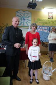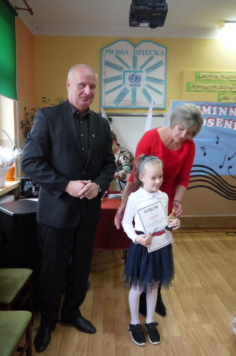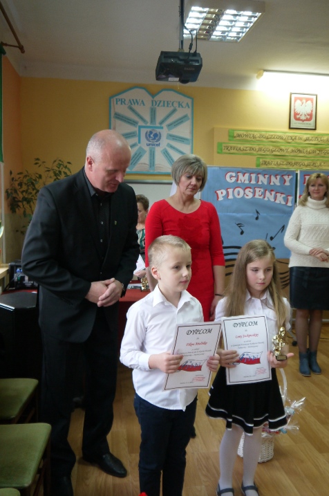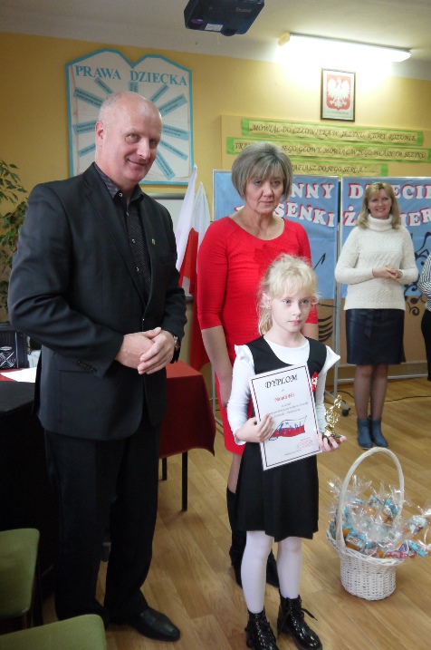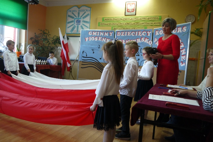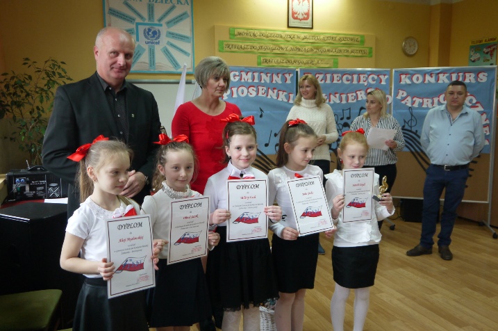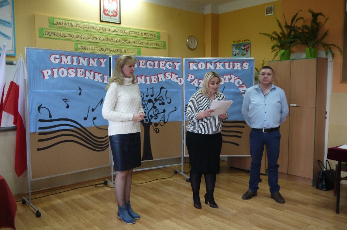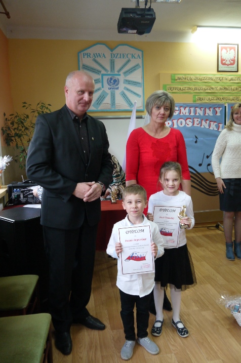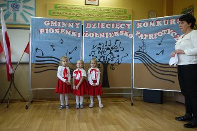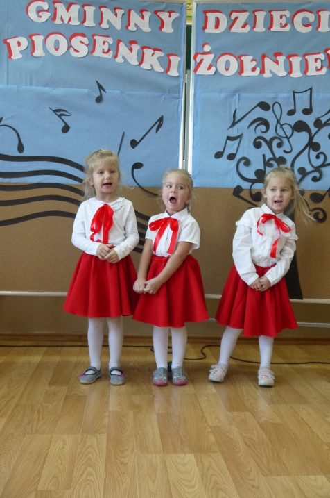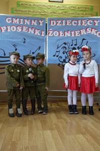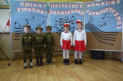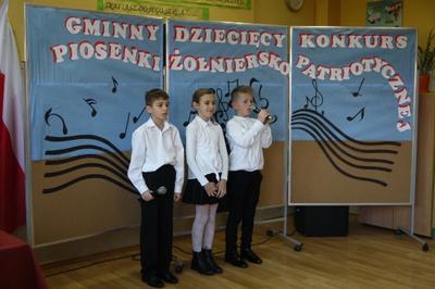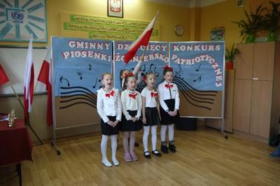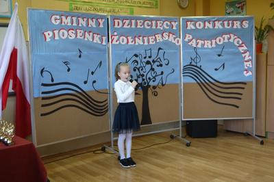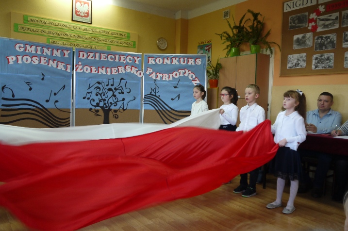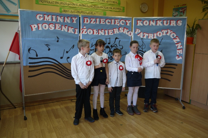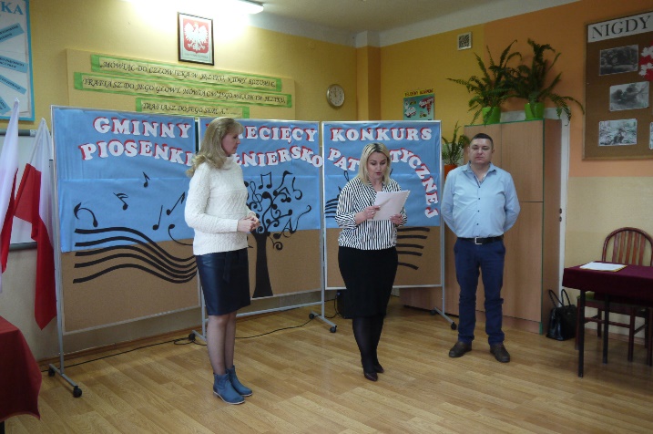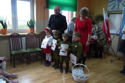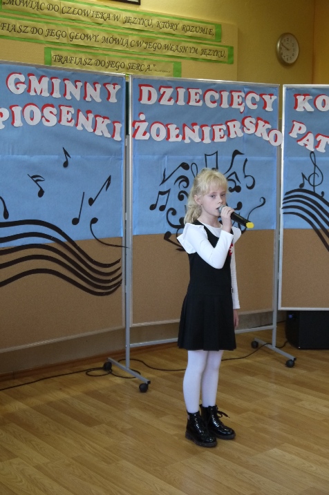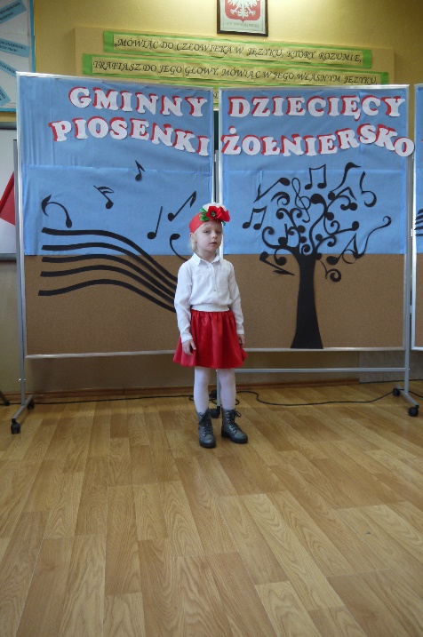 28 listopada odbył się w naszej szkole Gminny Dziecięcy Konkurs Piosenki Żołniersko-Patriotycznej w którym mogliśmy usłyszeć piękne utwory patriotyczne oraz żołnierskie w wykonaniu dzieci ze szkół naszej gminy. Wszyscy mali wykonawcy zaprezentowali się z jak najlepszej strony. Najwyższe miejsce na podium w poszczególnych kategoriach wiekowych zajęli: