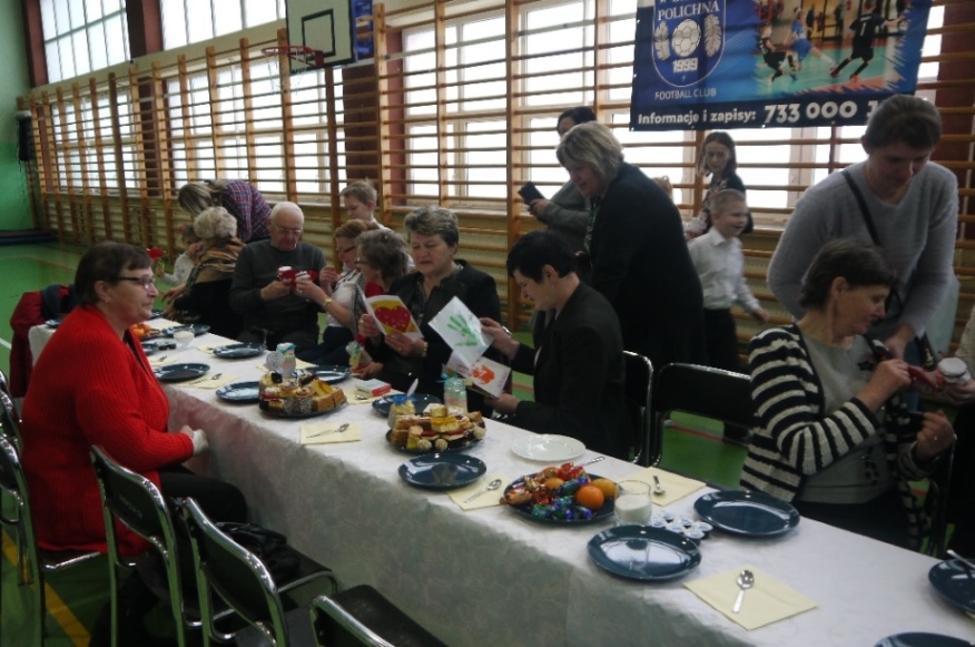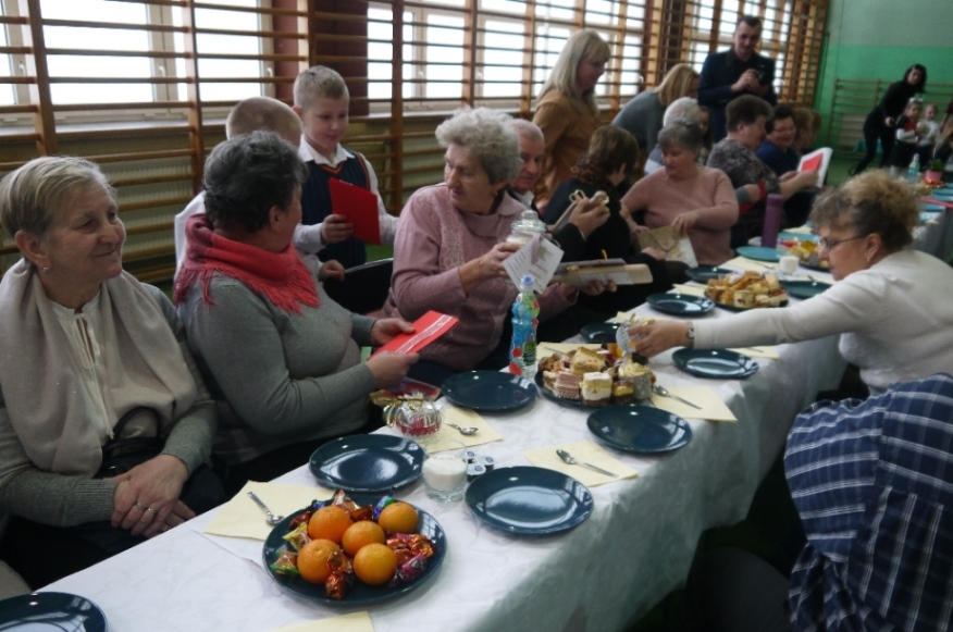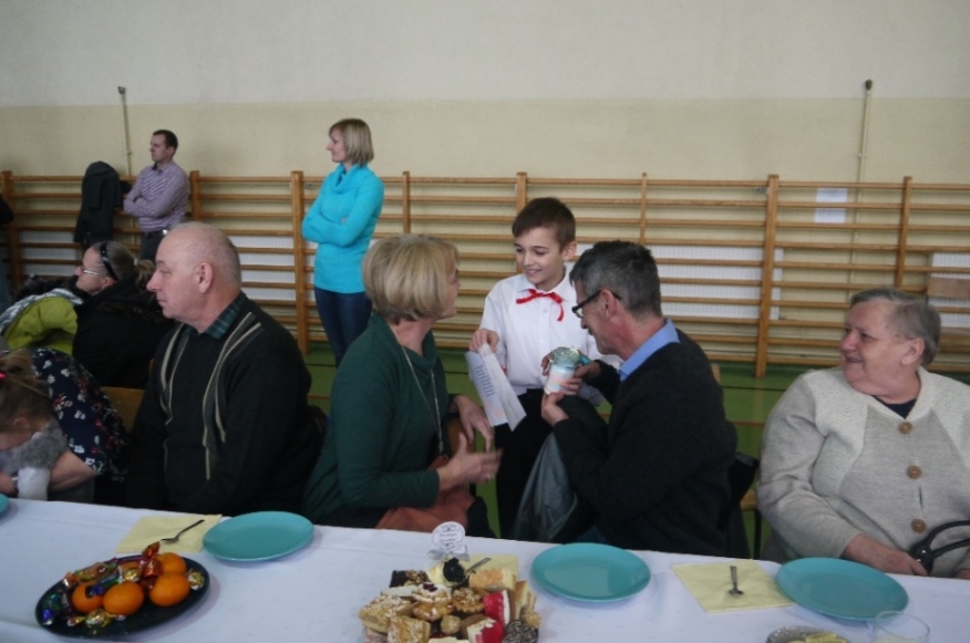 W trakcie uroczystości babcie i dziadkowie mogli podziwiać swoje pociechy w różnych formach artystycznych a następnie każdy wnuczek i wnuczka obdarował swoich ukochanych gości upominkami, przygotowanymi własnoręcznie. Dzieci chciały swoimi występami wyrazić miłość, wdzięczność i szacunek kochanym babciom i dziadkom. To przecież od nich dzieci otrzymują wiele ciepła i dobra, za które warto i trzeba dziękować. Spotkanie upłynęło w miłej i serdecznej atmosferze. Rodzice natomiast zadbali o przygotowanie dla naszych drogich gości poczęstunku w postaci ciasta, kawy, herbaty oraz owoców.